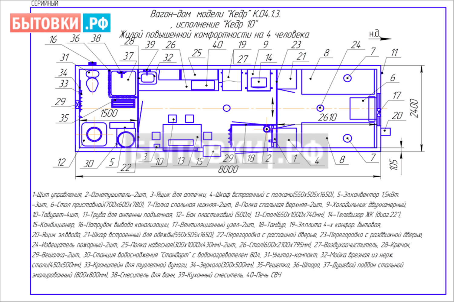 Электрика «комфорт» (2 светильников люминисцентных, 4 двойных розеток, выключатели, автоматы, УЗО, 3–х жильный кабель, проводка в кабель–канале, электрощит, силовой разъем)Безопасноять: