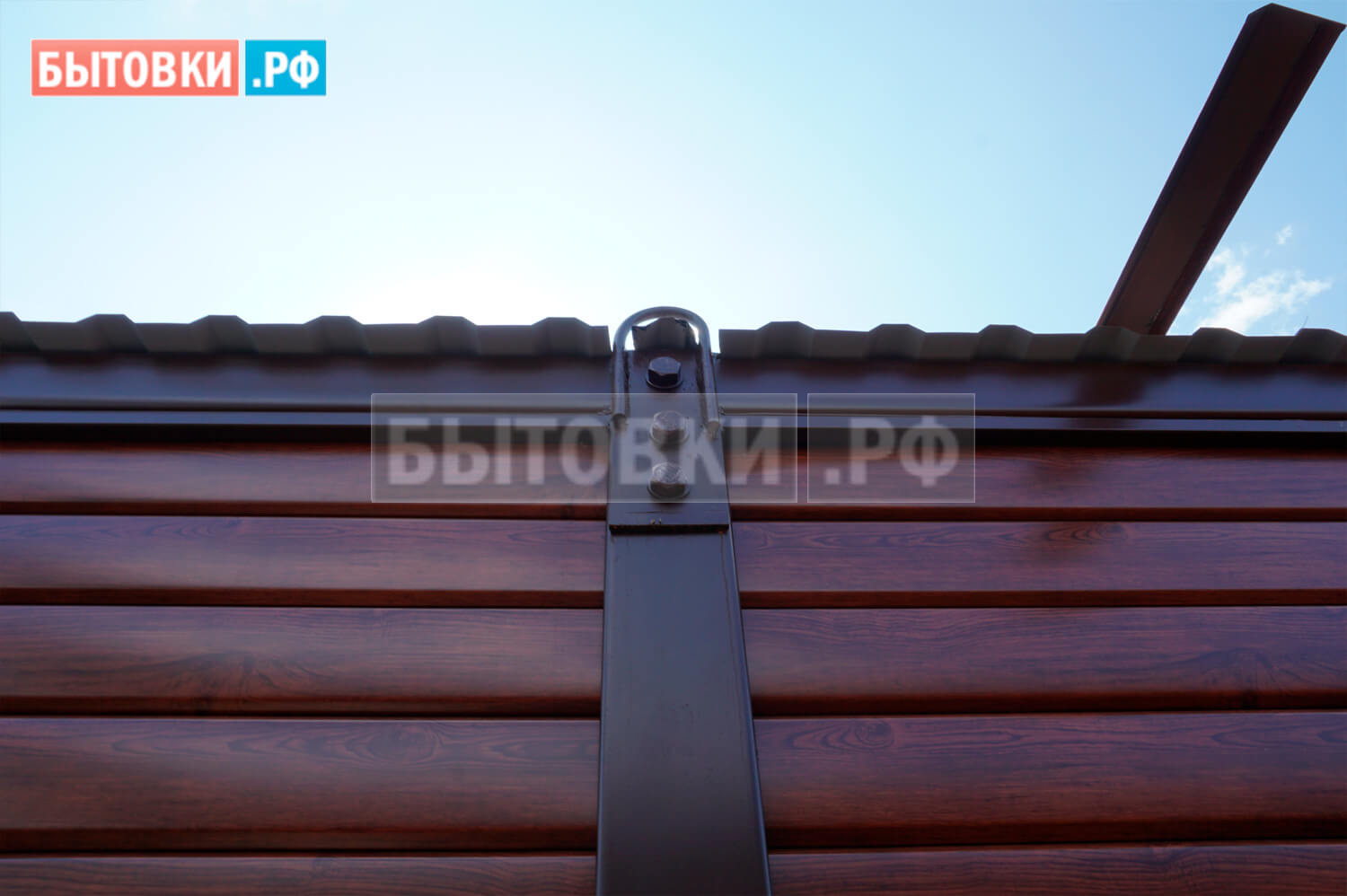 Рама основания изготовлена из швеллера №10, покрытие профнастилом С-8 оцинкованным толщиной 0,45 мм, способ соединения сварка. Антикорозийная обработка поверхностей грунт-эмаль «3в1» RALL 8017, толщиной 60-80 мкм.Крыша: