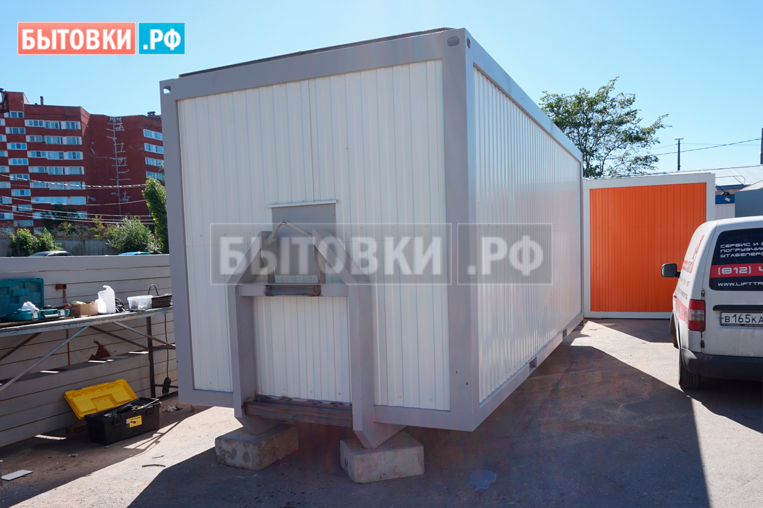 Нержавеющая кровля, покрытая двумя оцинкованными стальными листами толщиной 0,55 мм с двойным фальцевым соединением вдоль контейнера и гидроизоляцией. Скат кровли 30 мм.Наружная отделка: