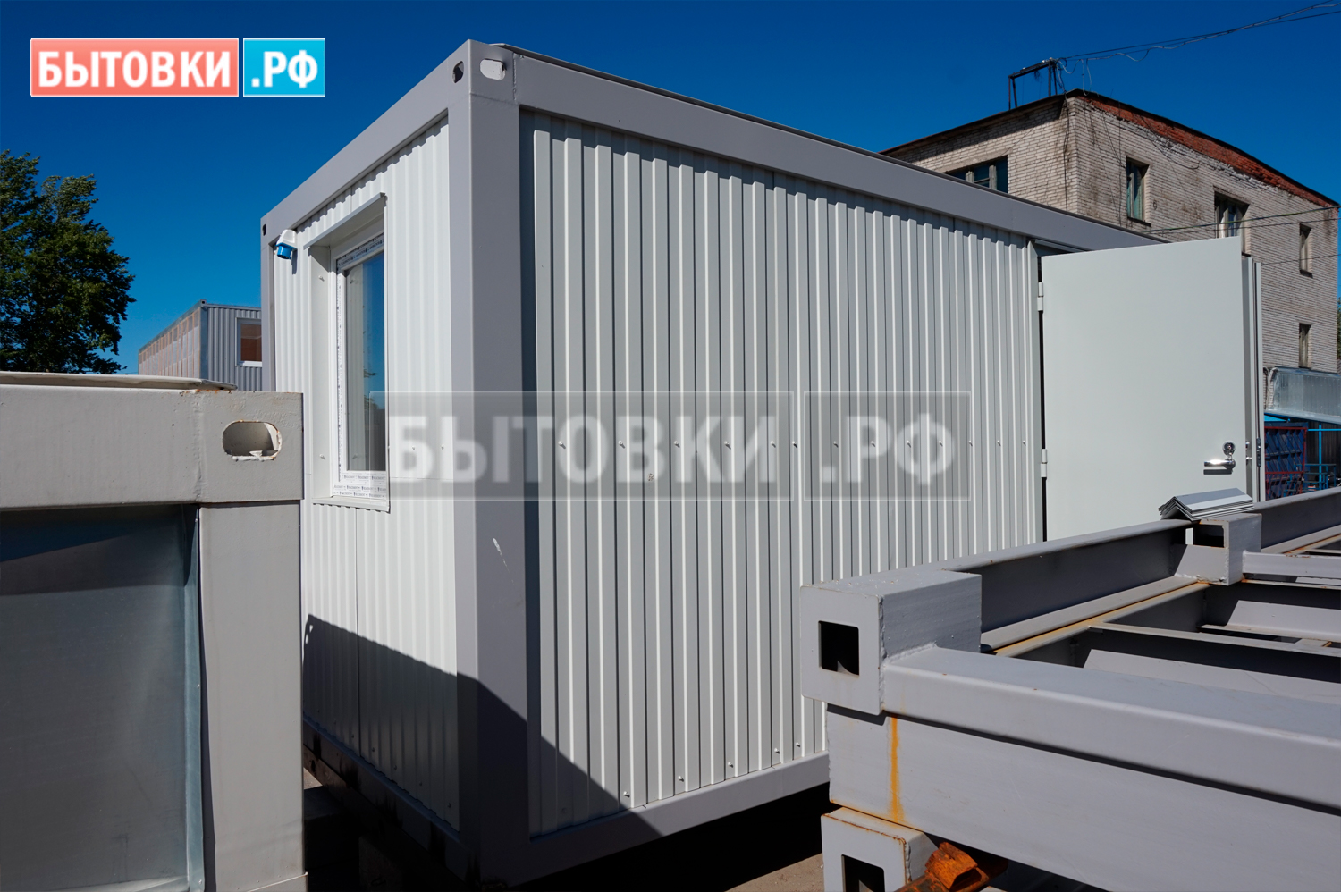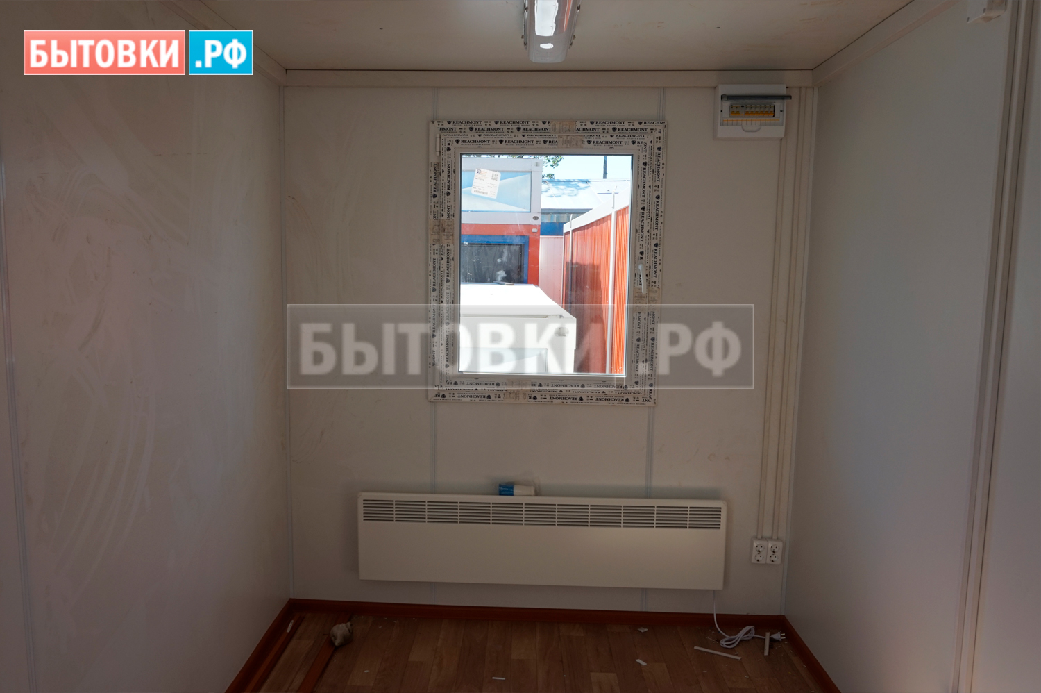 Металлопластиковые, поворотно-откидные, двухкамерные (рама из профиля створки LL61/D). Размер окна 900х1100 мм – 1 шт. Откосы окна из стального гнутого и окрашенного листа толщиной 0,5 мм снаружи контейнера. Защитная роллета на окно.Дополнительное оборудование: