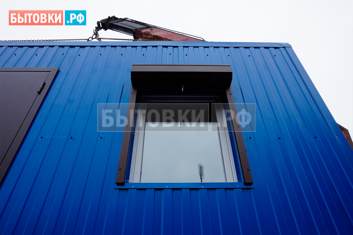 Профлист с полимерным покрытием С-8 толщиной 0,7 мм, RAL 5005. Листы закреплены кровельными шурупами с изоляционными прокладками.Каркас: