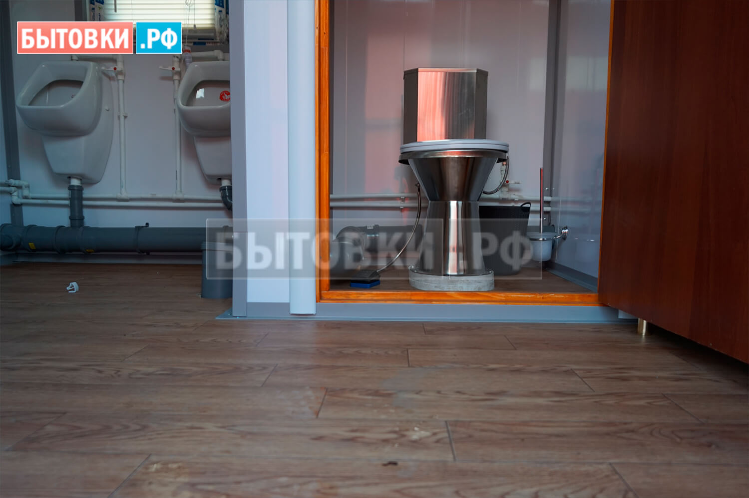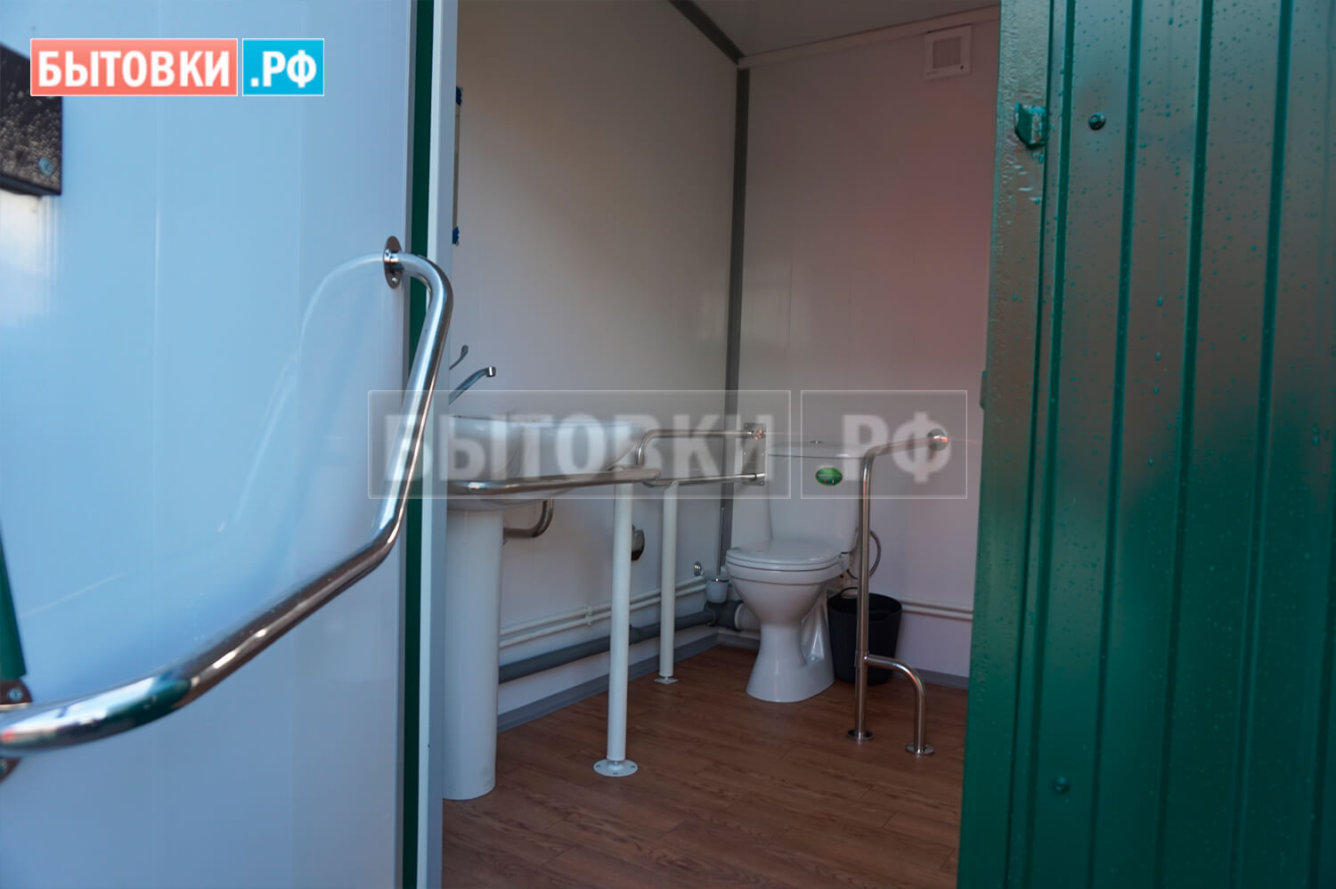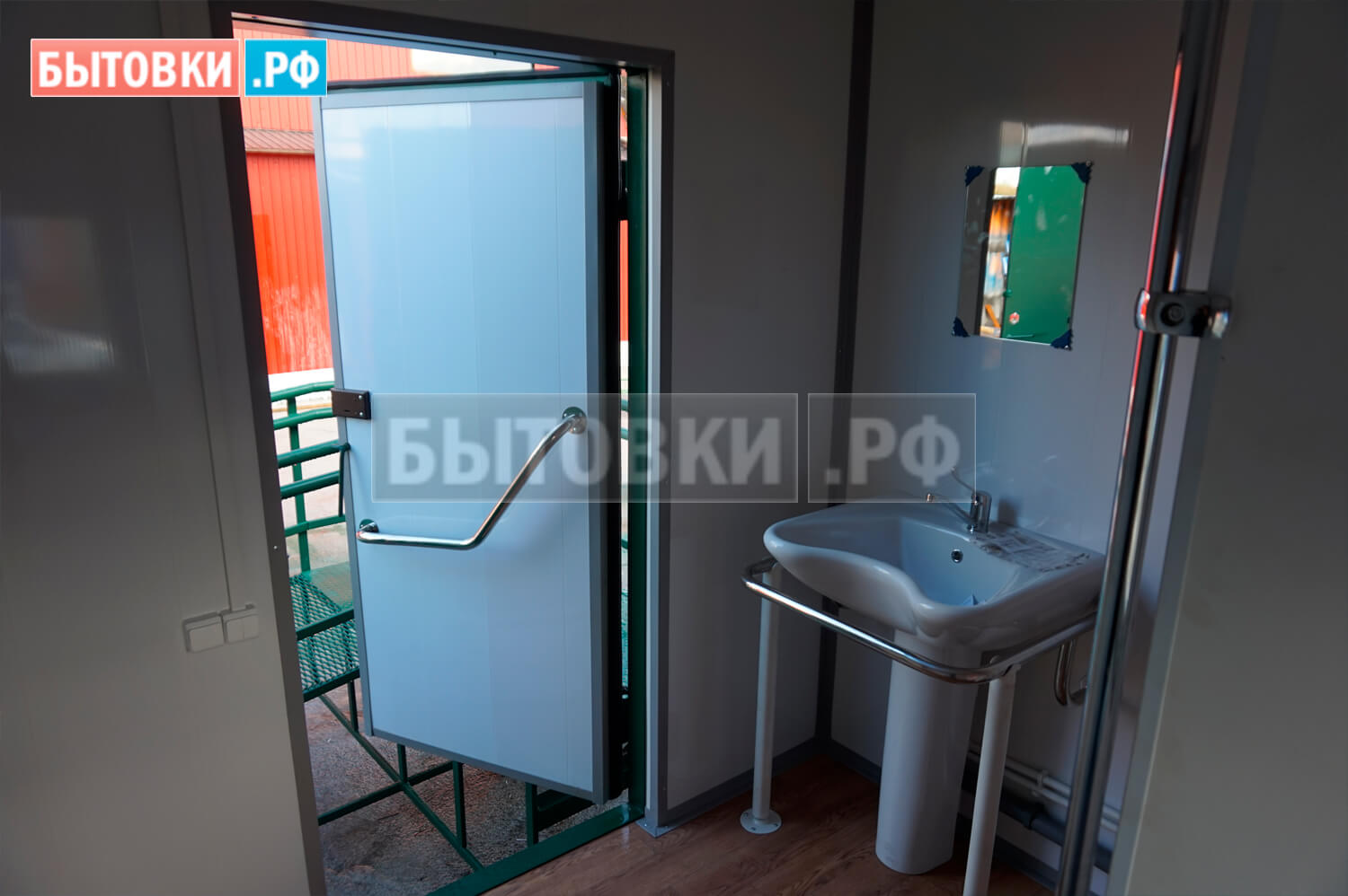 Унитаз гравитационный – 3 шт; Унитаз напольный МГН - 1 шт; Мойка для МГН - 1 шт; Откидной поручень; Г-образный поручень у унитаза; Поручень для раковины; Писсуар – 2 шт; Умывальник с подогревом – 2 шт; Разводка сантехники с выводом сантехнических труб нар