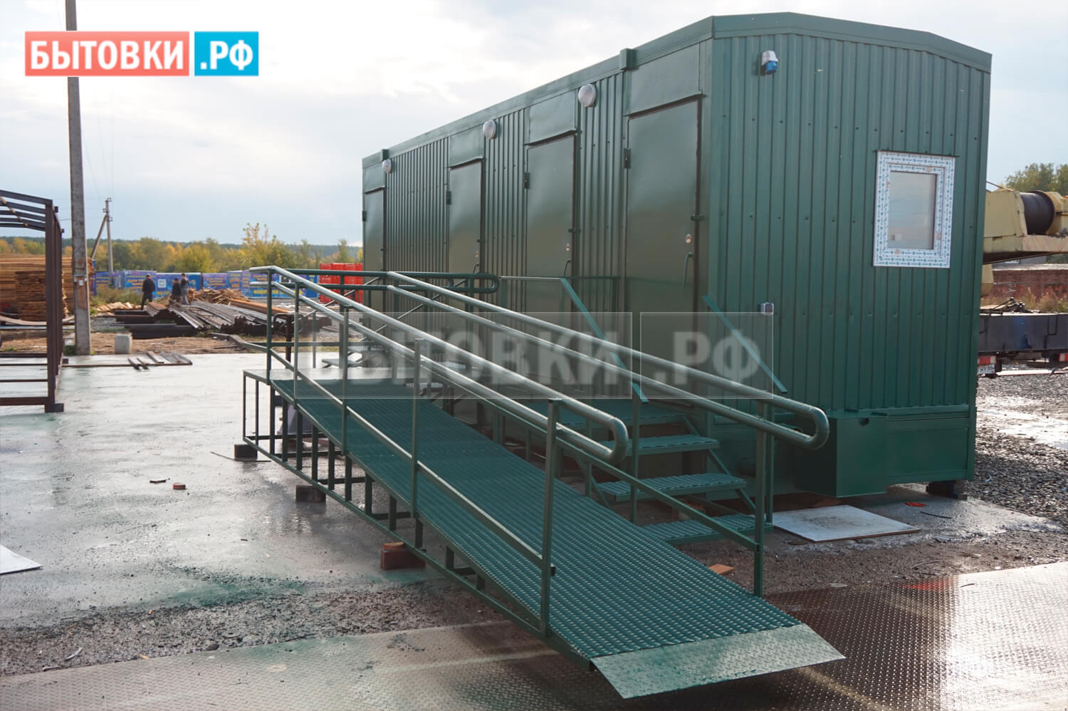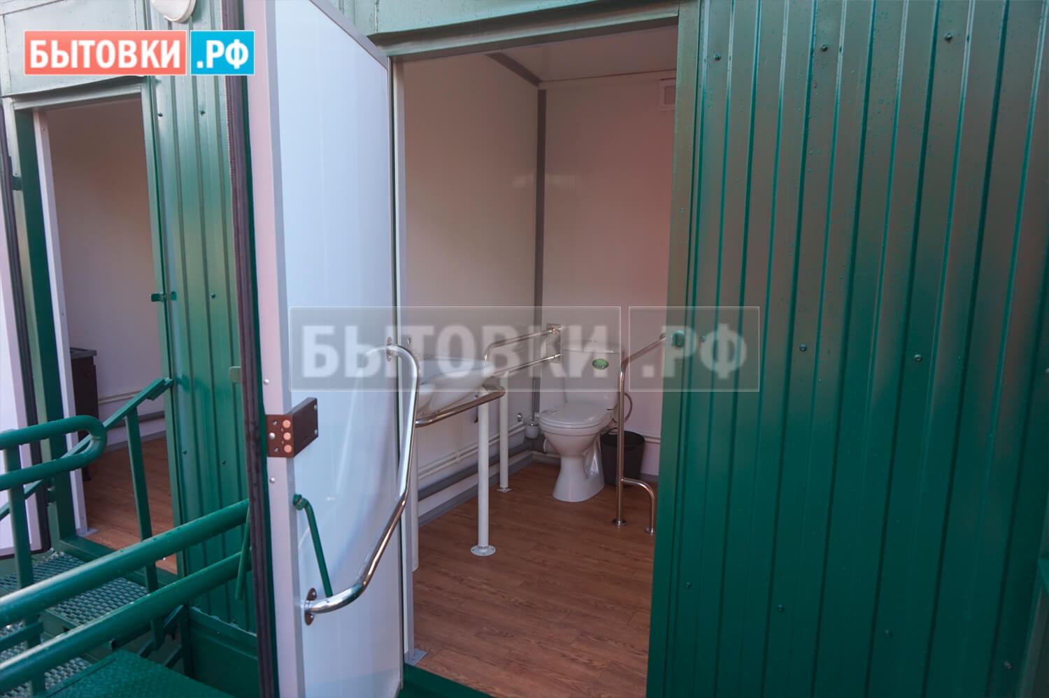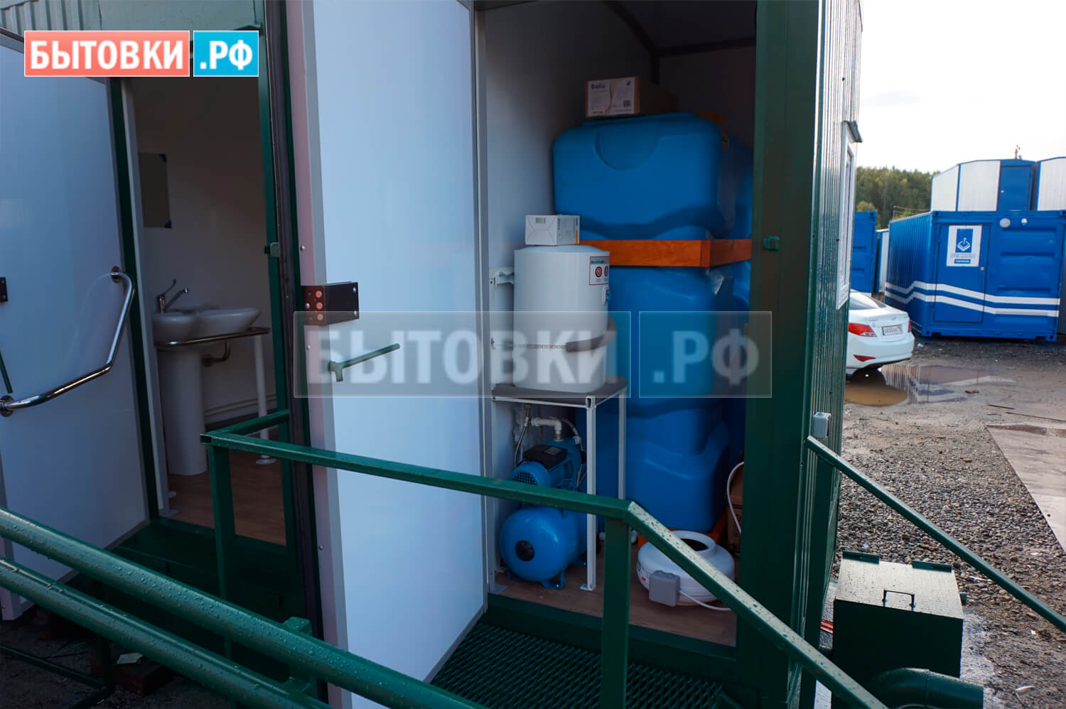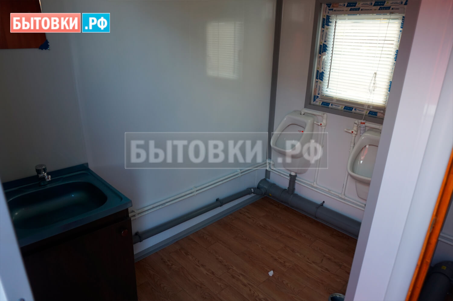 Унитаз гравитационный – 3 шт; Унитаз напольный МГН - 1 шт; Мойка для МГН - 1 шт; Откидной поручень; Г-образный поручень у унитаза; Поручень для раковины; Писсуар – 2 шт; Умывальник с подогревом – 2 шт; Разводка сантехники с выводом сантехнических труб нар