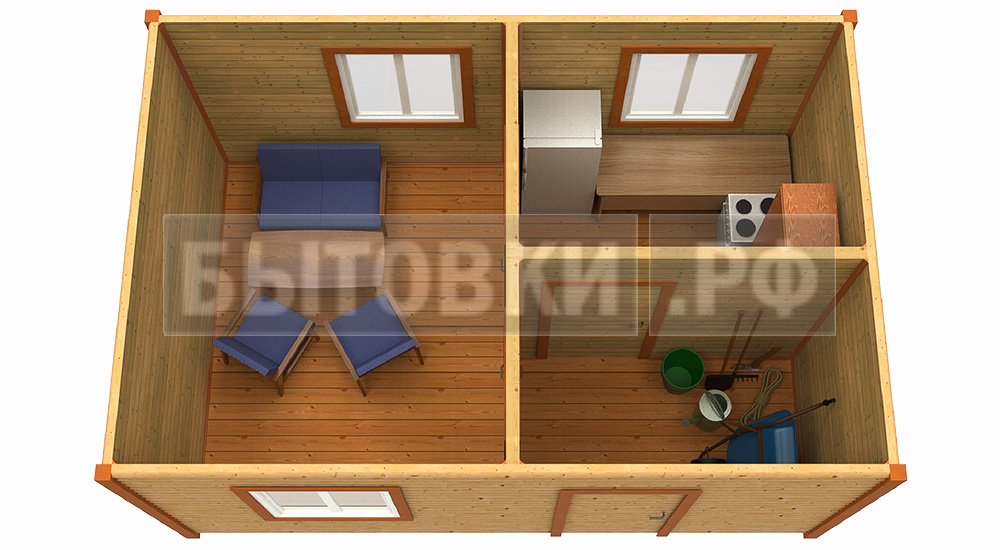 Дачная бытовка двухкомнатная «распашонка»