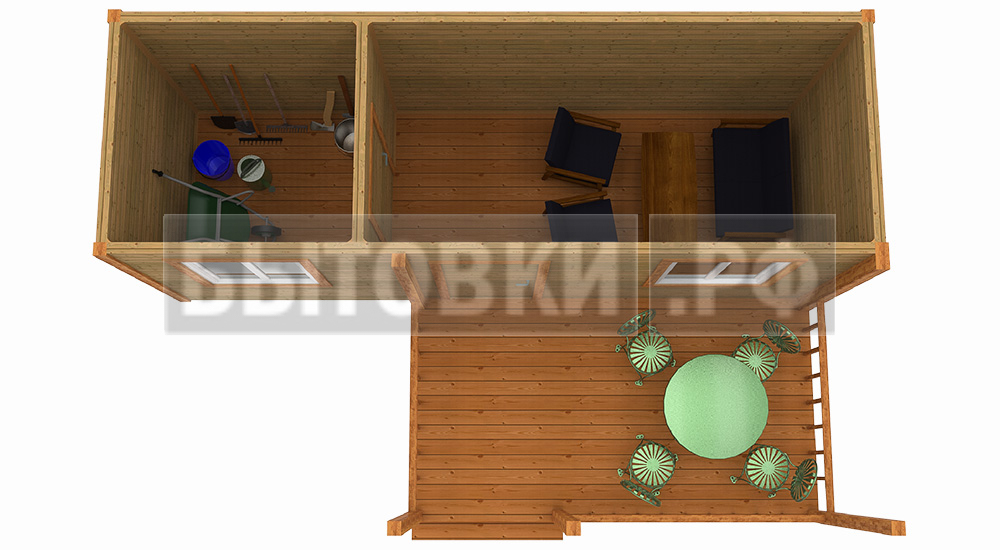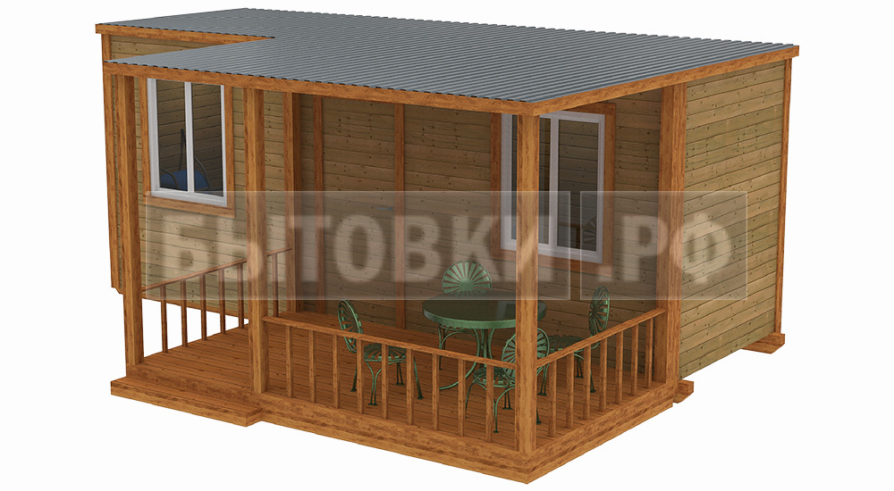 Дачная бытовка деревянная с верандой