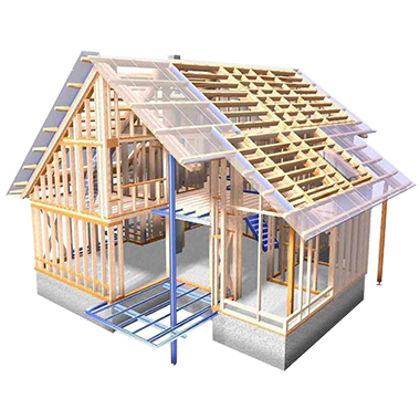 - каркасные – технология поэтажного возведения Платформа либо вертикальная сборка по методу Балун, силовой каркас обшивается любыми материалами, стены не являются несущими