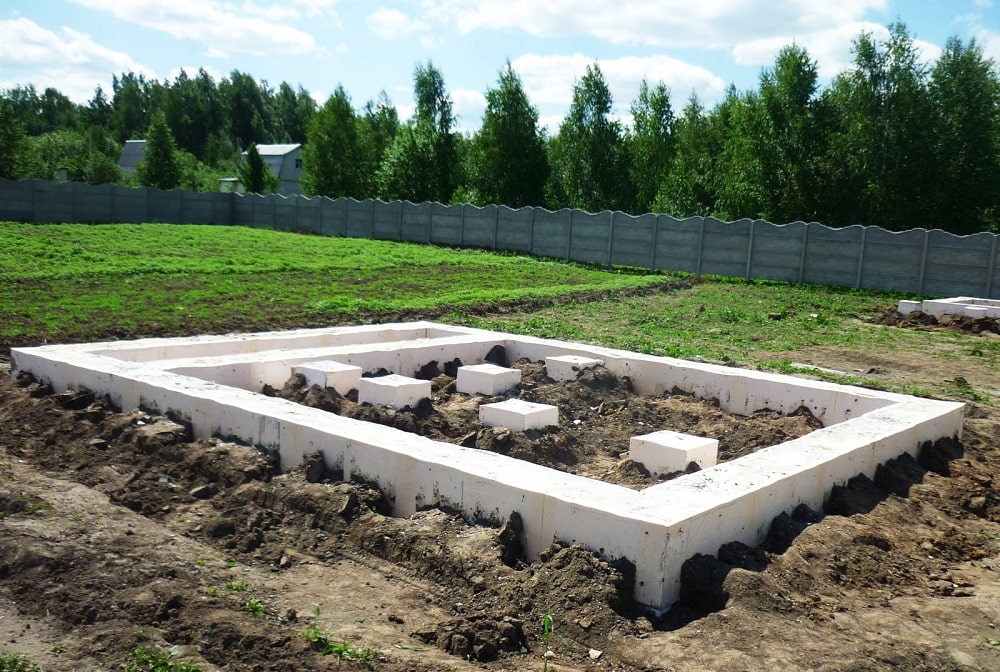 Столбчатые фундаменты запрещены на пучинистых грунтах, при высоком УГВ, на крутых склонах. Здесь нет цоколя, вместо него используется забирка из листовых материалов или кирпичной кладки.