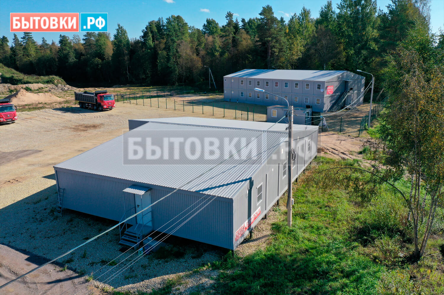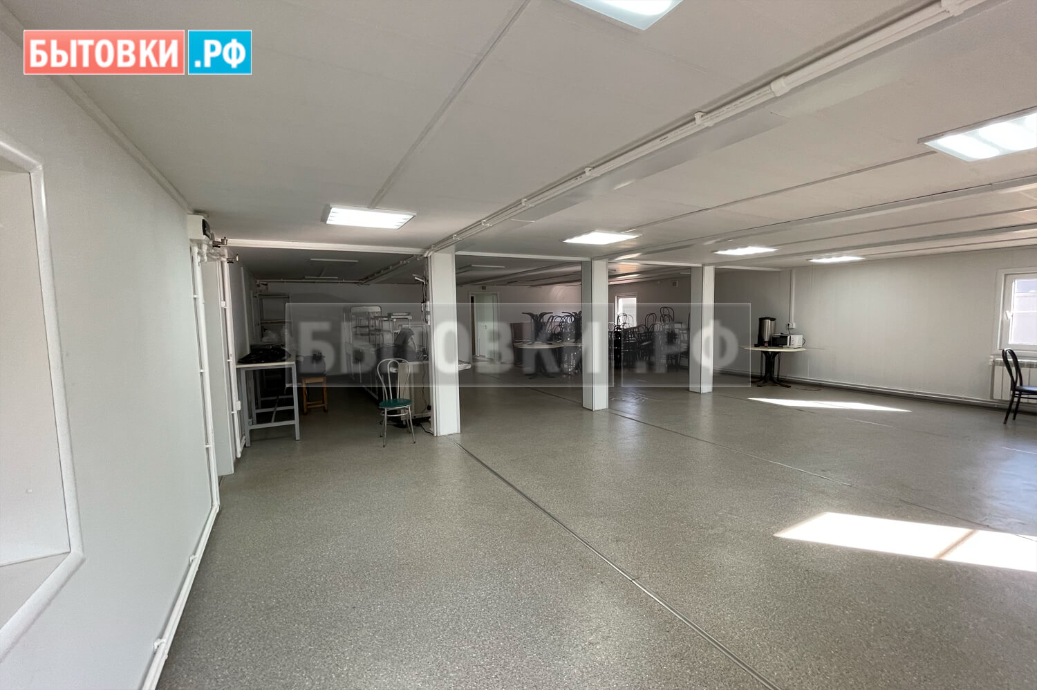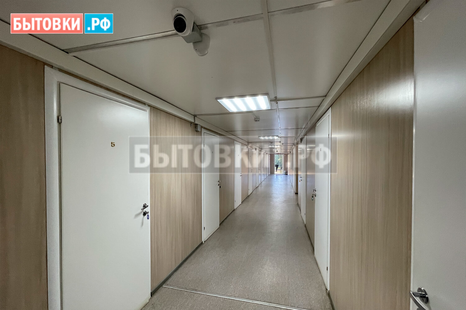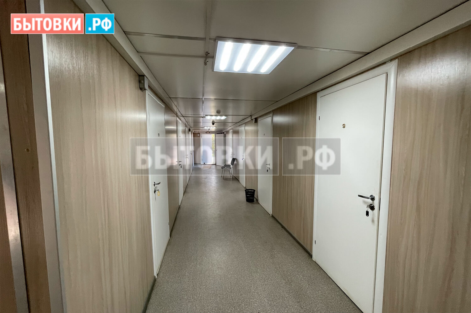 Полукоммерческий линолеум поверх ДСП 16 мм. в жилых блоках; Полукоммерческий линолеум поверх ЦСП 16 мм. в туалетах и душевых; Плинтуса ПВХ;Электрика: