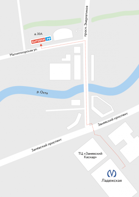 Станция метро Ладожская. Из метро пройти сквозь ТЦ «Невский каскад» выйти на дорогу. Идти прямо по направлению движения машин. На первом светофоре переходим Заневский проспект. Перед собой видим бизнес центр, уходим на право. Проходим автостоянку машин по левой руке. Начинается бетонный забор идём вдоль него, как он заканчивается сворачиваем на лево. Идём до двухэтажного здания желтого цвета, заходим в крыльцо. Поднимаемся по лестнице в правое крыло здания, третий кабинет на право - офис «БЫТОВКИ.РФ»
