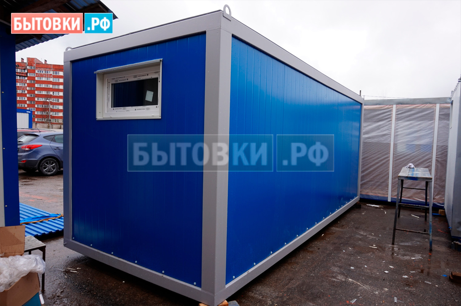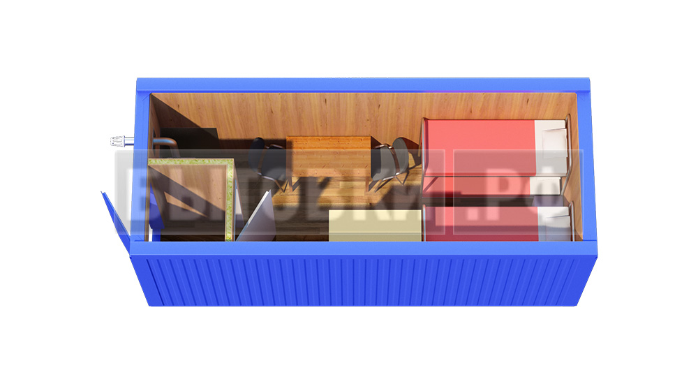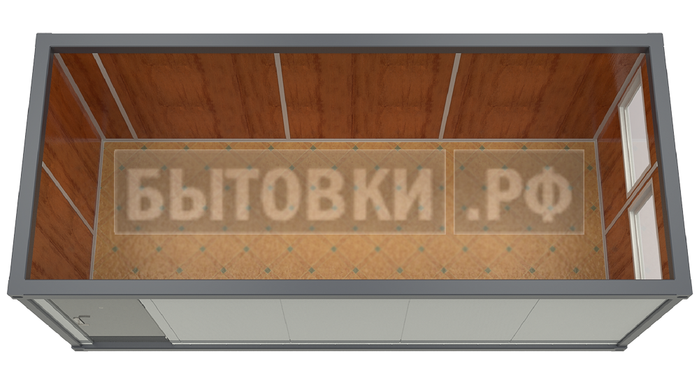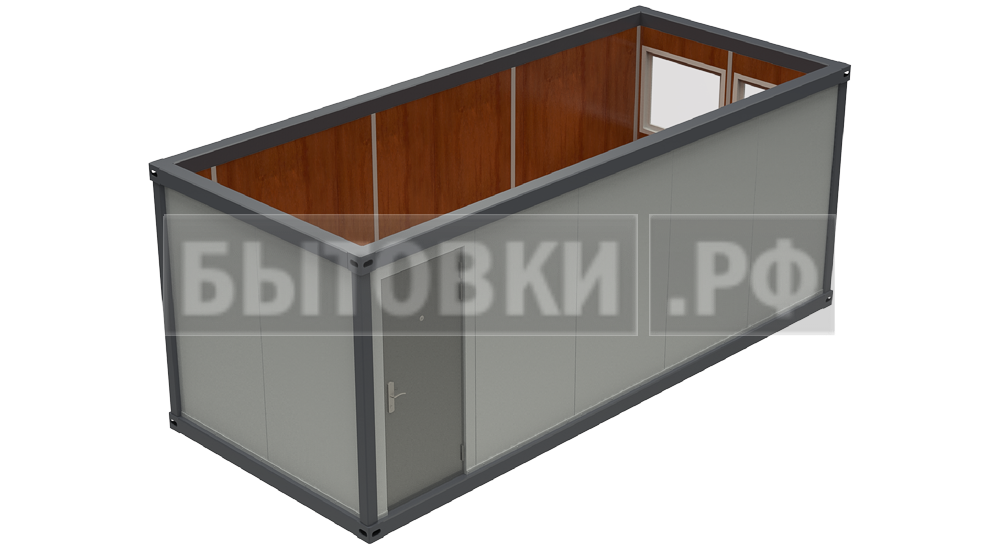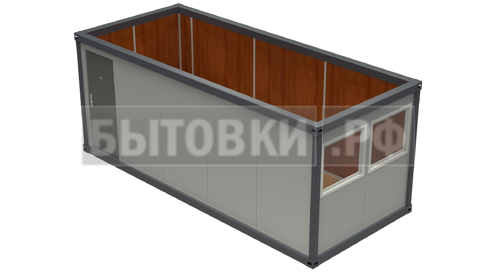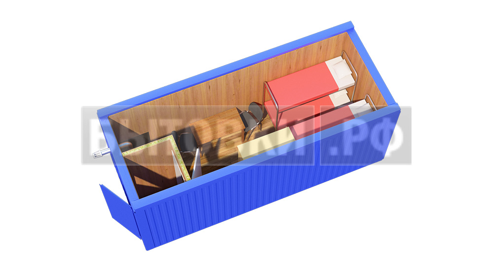 Оцинкованный лист 6,0х1,25 м толщиной 0,55 мм с двойным фальцевым соединением вдоль контейнера и гидроизоляцией. Скат кровли 25 ммКаркас: