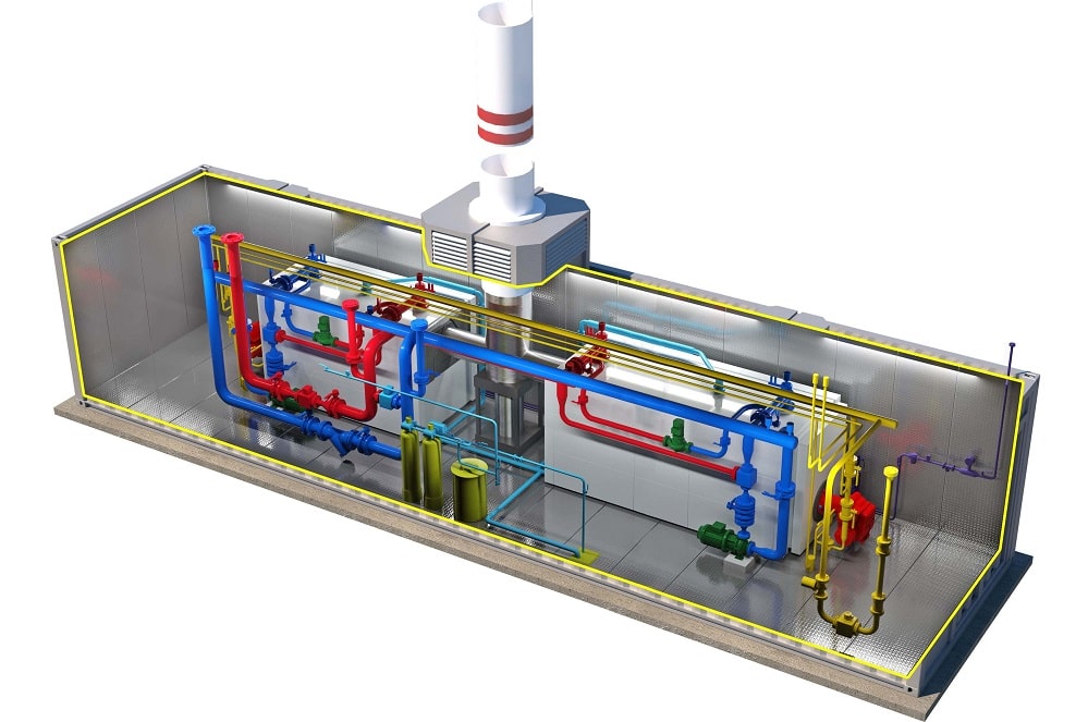 Котельные небольшой мощности монтируются внутри одного блок-контейнера. Для обогрева большого количества зданий используются модульные здания промышленного типа, собранные из нескольких типовых блоков с учетом вида энергоносителя.