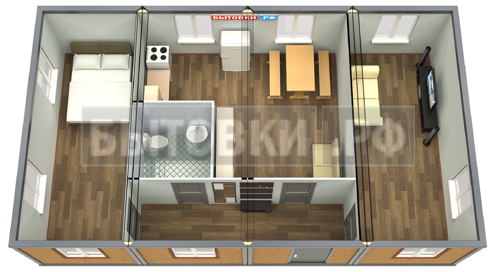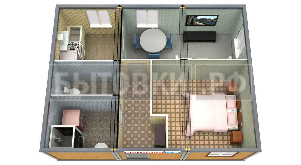 Затем наши сотрудники компонуют их в единый мобильный, стационарный комплекс. На этом этапе имеется возможность заказать нужное количество этажей, форму коробки, подключение к централизованным городским коммуникациям или к автономным системам жизнеобеспечения.