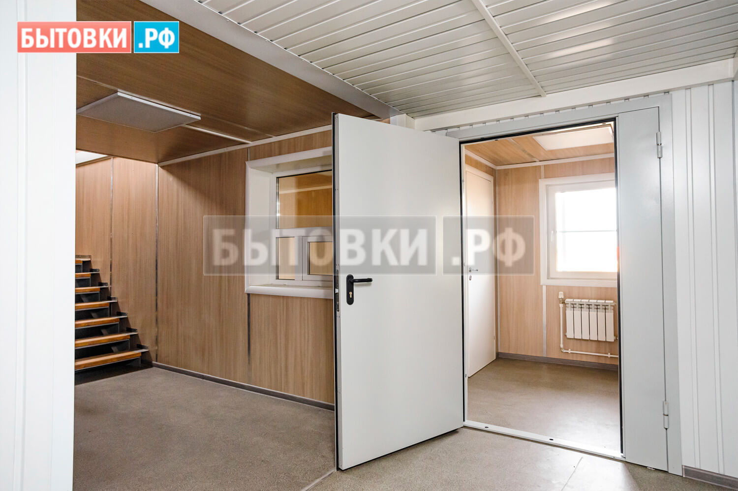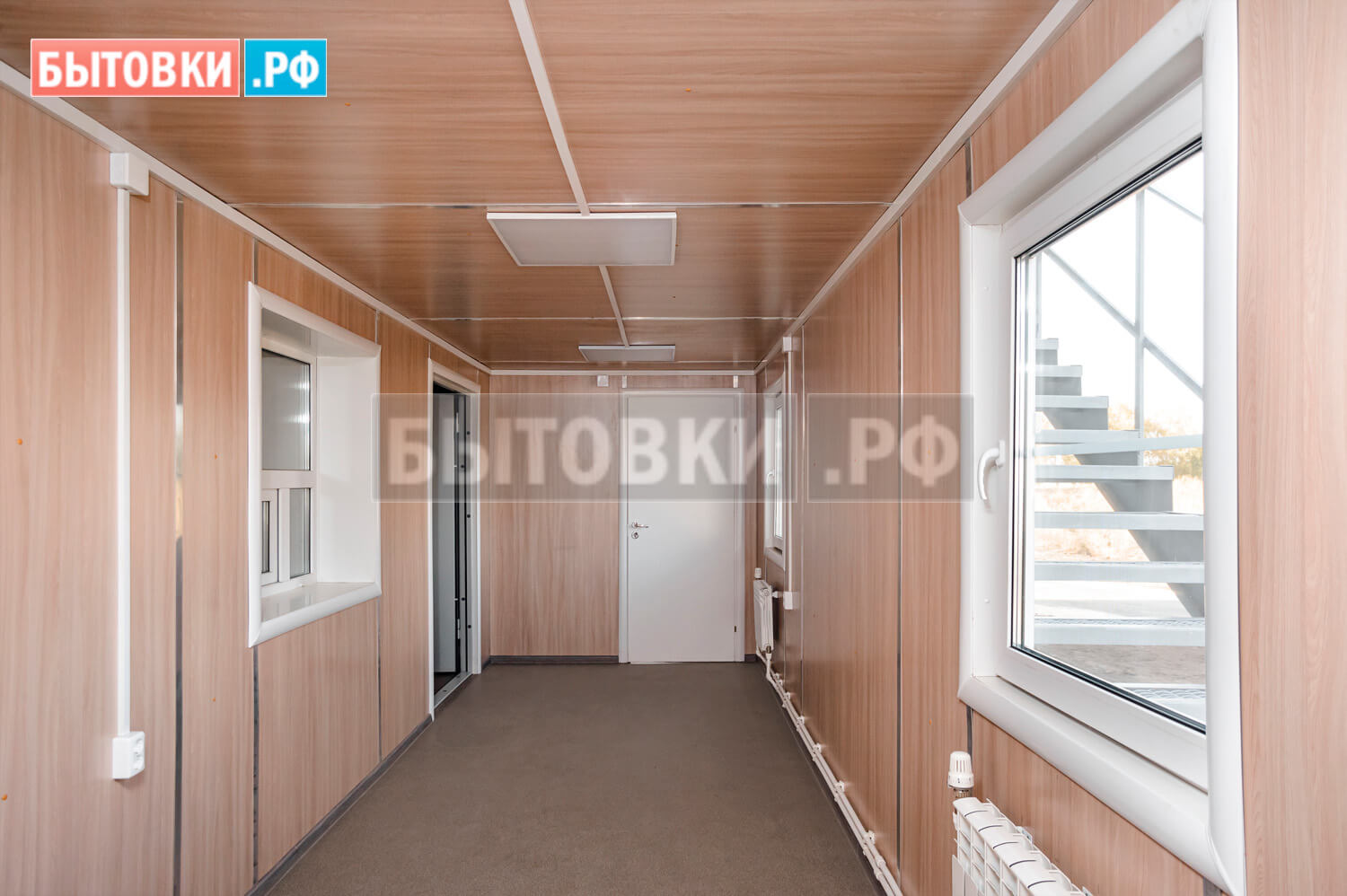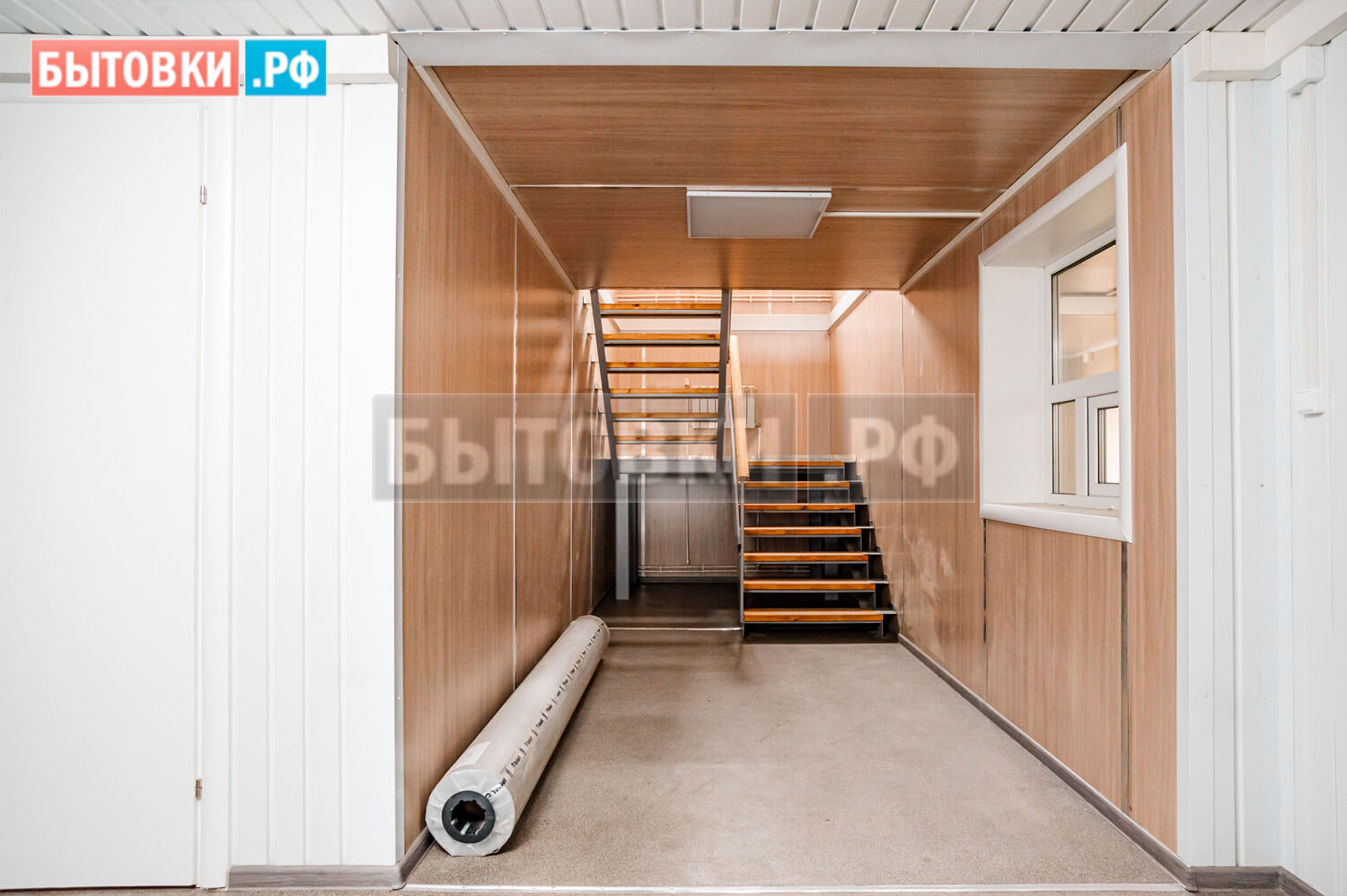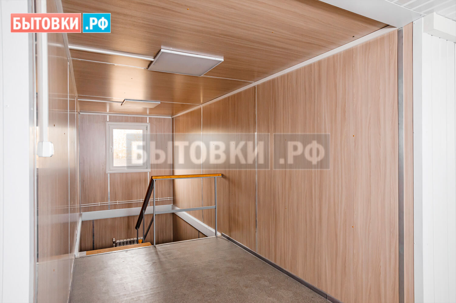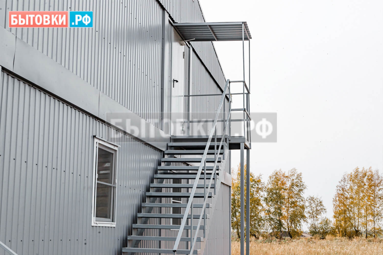 2 пролета, каркас из швеллера, ступени деревянные, перила, площадка на металлической опоре, обшивка ламинированными панелями – 1 шт.;Пожарная безопасность: