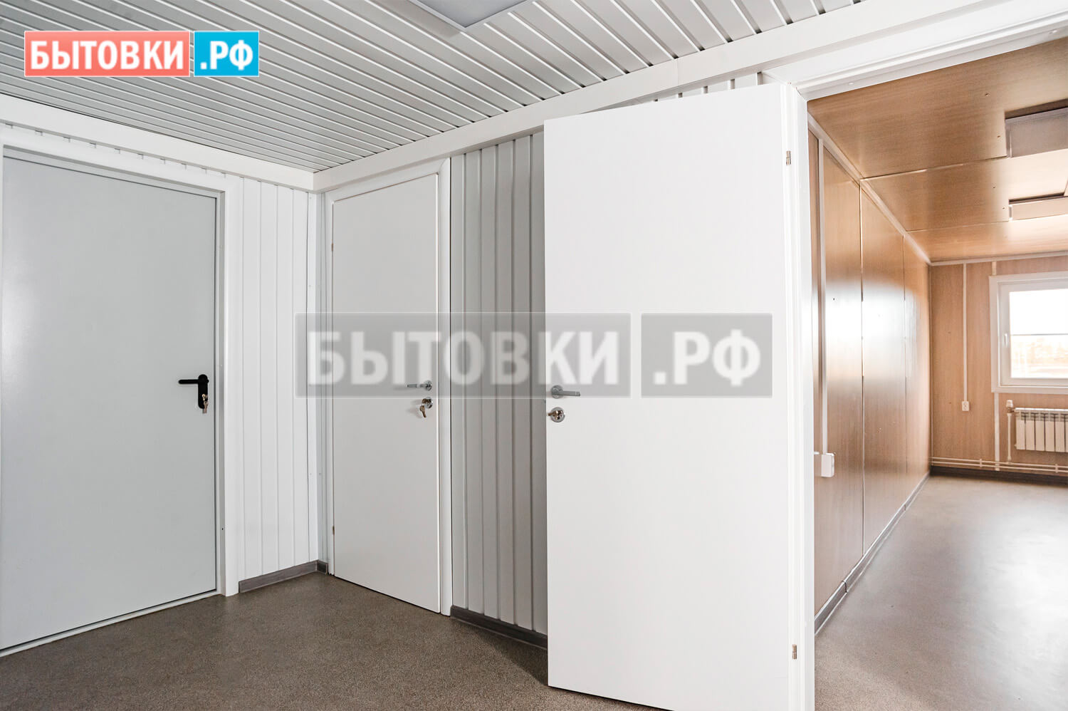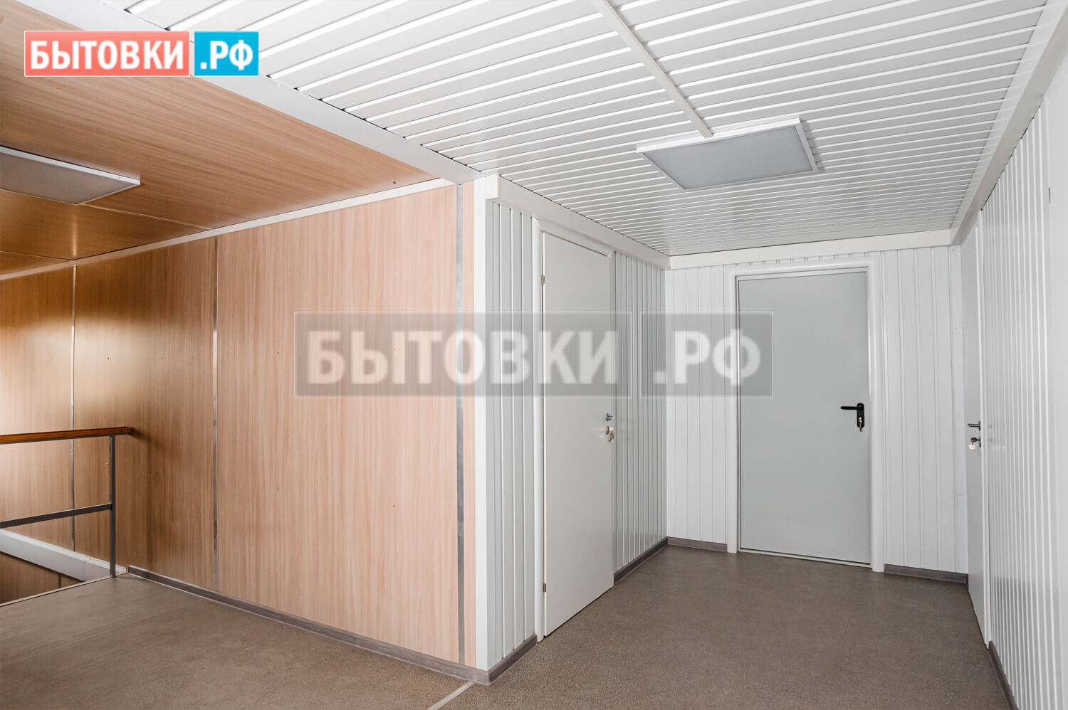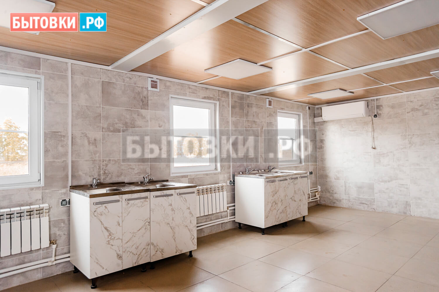 Потолочные лаги – деревянный брус 100x40 мм. с шагом 600 мм. 2 - 4 сорта естественной влажности; Поверх сплошная обрезная доска 100x25 мм. 2 - 4 сорта естественной влажности; Обработка огне-биозащитным составом;Кровля блок-контейнеров:
