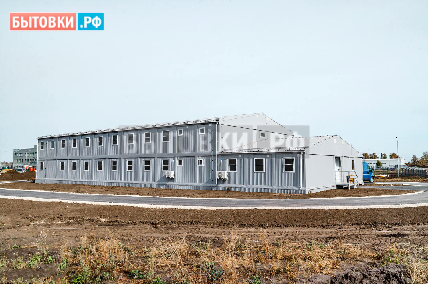 36000х14000х 6500 мм. по внешнему краю с учетом двускатной кровли; Высота потолков от чистового пола – 2200 мм.Габаритные размеры блок-контейнеров:
