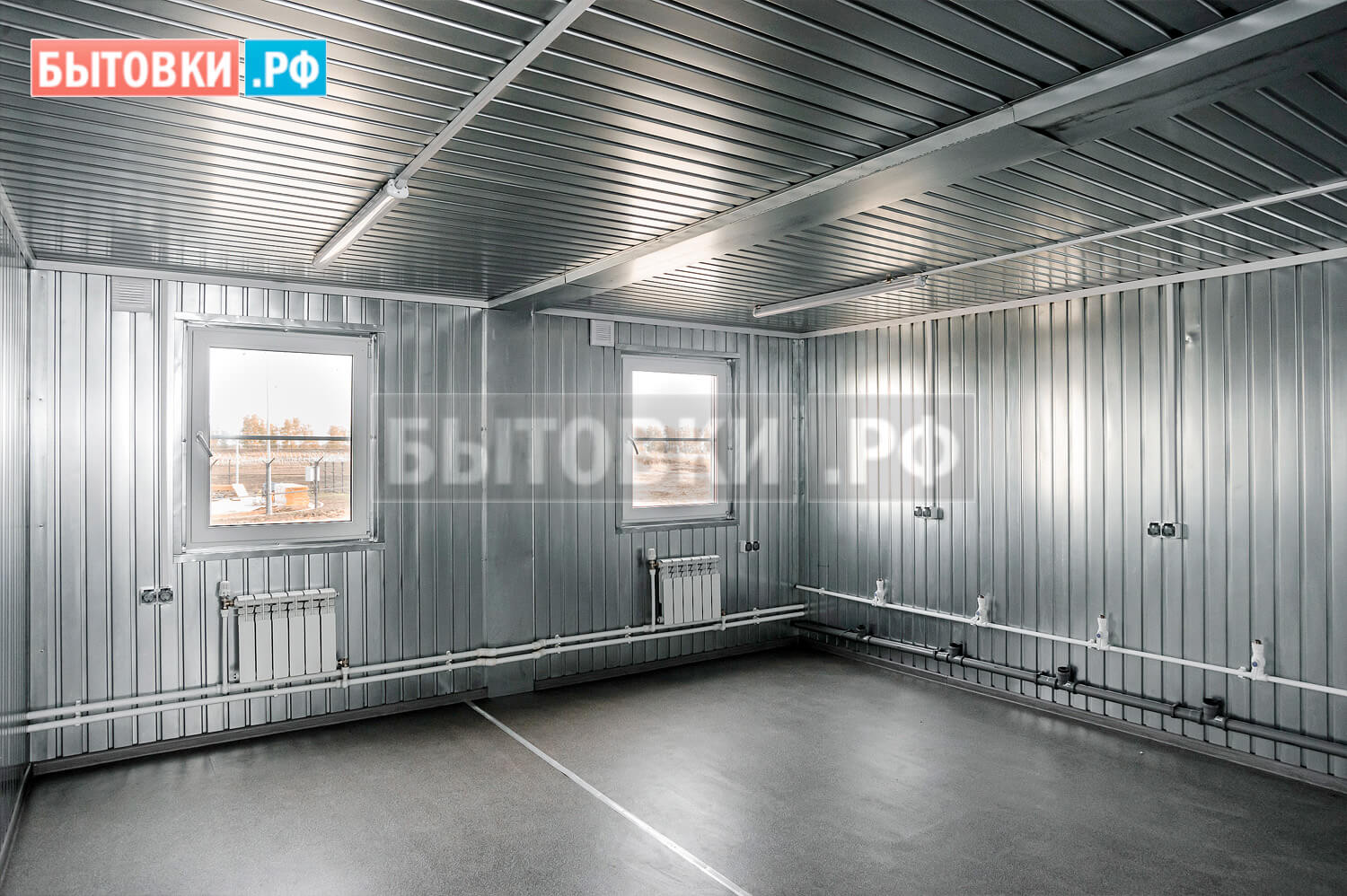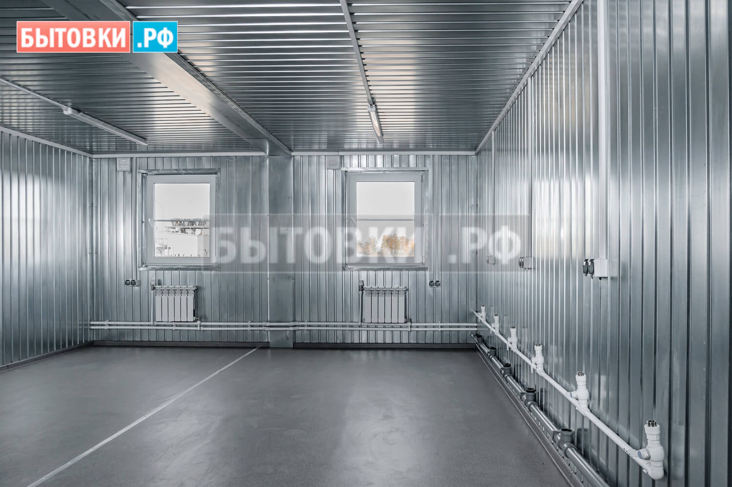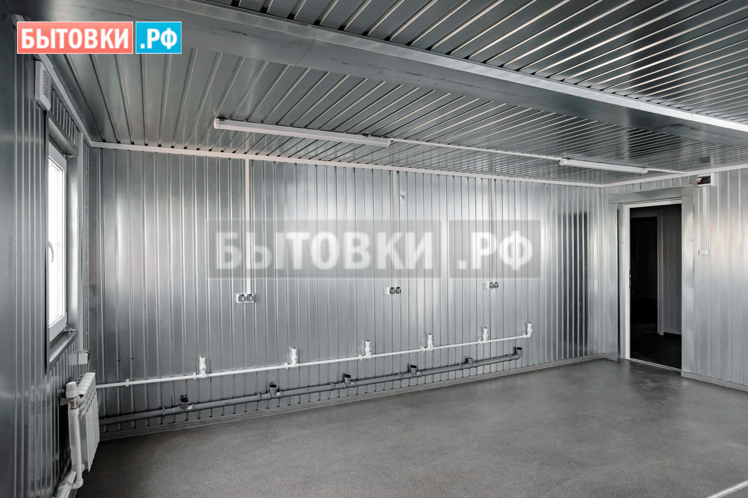 Оцинкованный проф. лист С8 0,45 мм. с полимерным покрытием по RAL 7004 (сигнально-серый); Отливы и саморезы в цвет листа;Внутренняя отделка стен:
