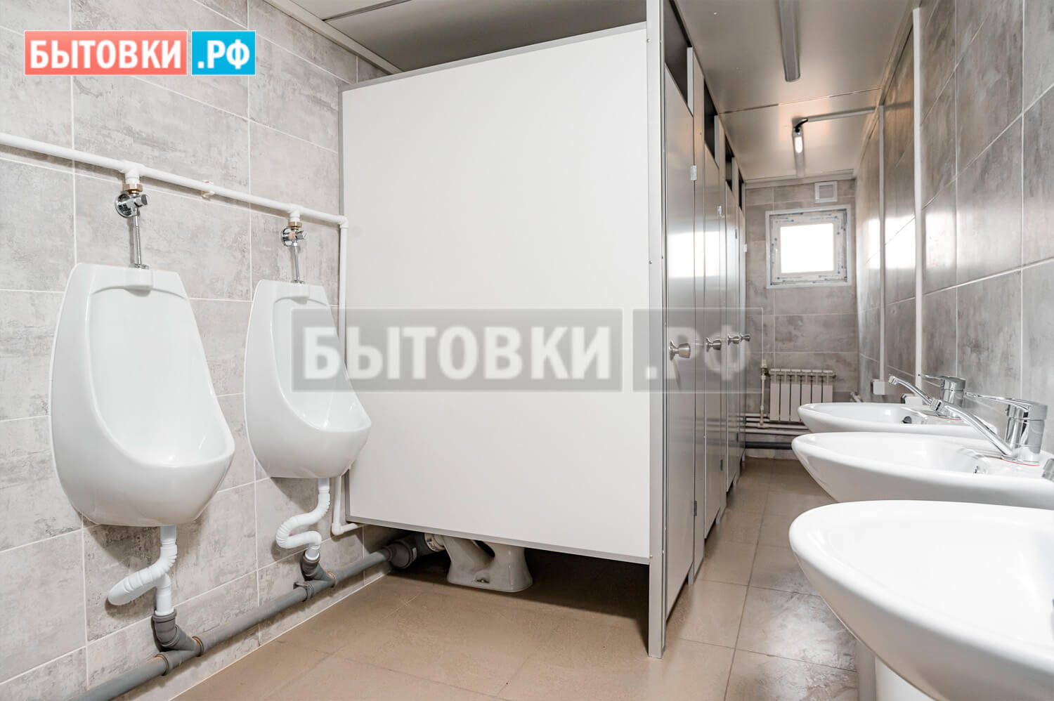 Унитаз компакт «РИО ROSA» (Кировская керамика) со сливным бачком – 16 шт.; Кабинка разделительная на алюминиевом каркасе в ЛДСП – 16 шт.; Писсуар керамический – 12 шт.; Раковина сан. фаянс и смеситель Sanita «Аттика» – 48” с пьедесталом – 26 шт.; РаковинОкна: