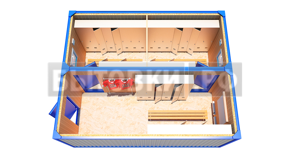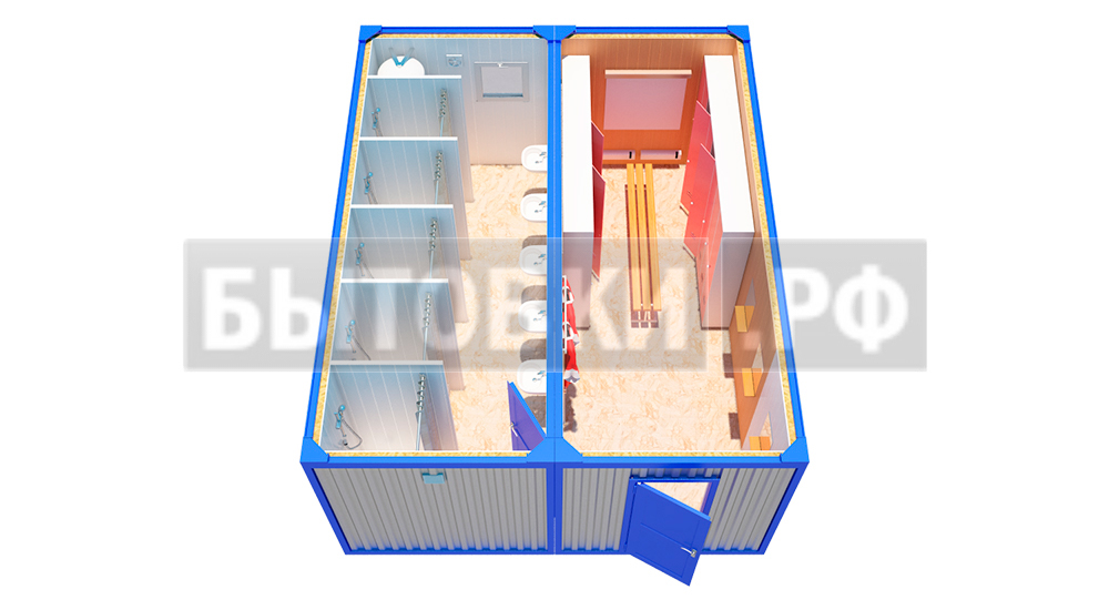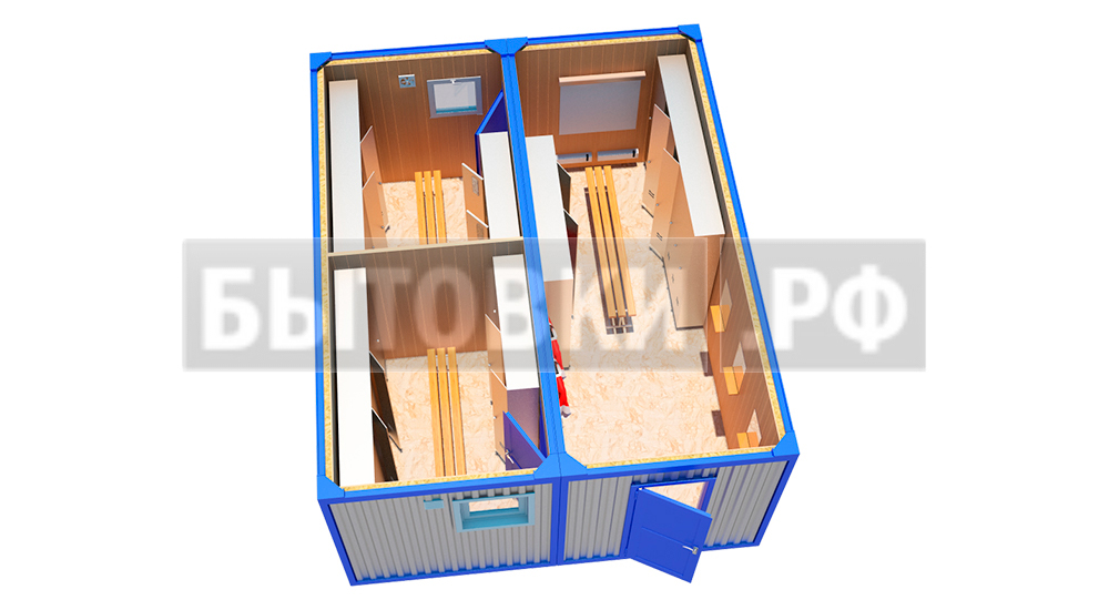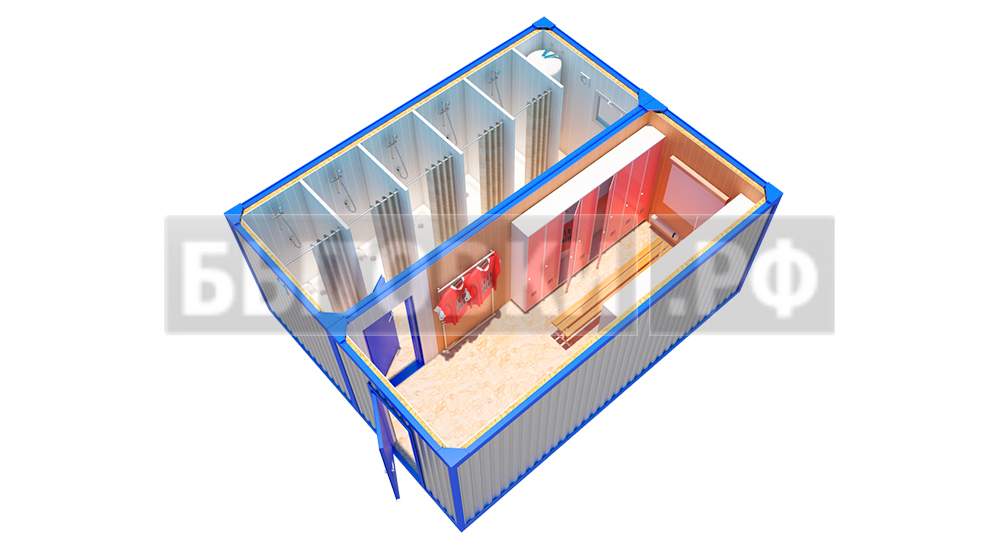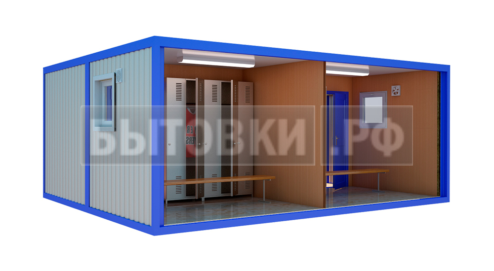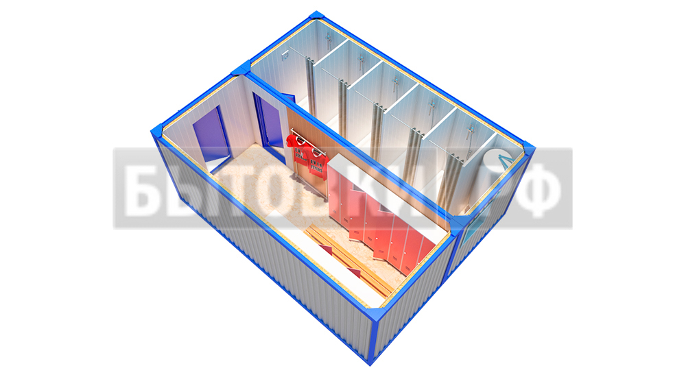 Герметичное металлическое 1 мм.В категорию модульные бытовые здания относят постройки для личной гигиены, переодевания, сушки, обеззараживания одежды, курения и прочих нужд. Требования санитарии для них разные, что необходимо учесть при проектировании.