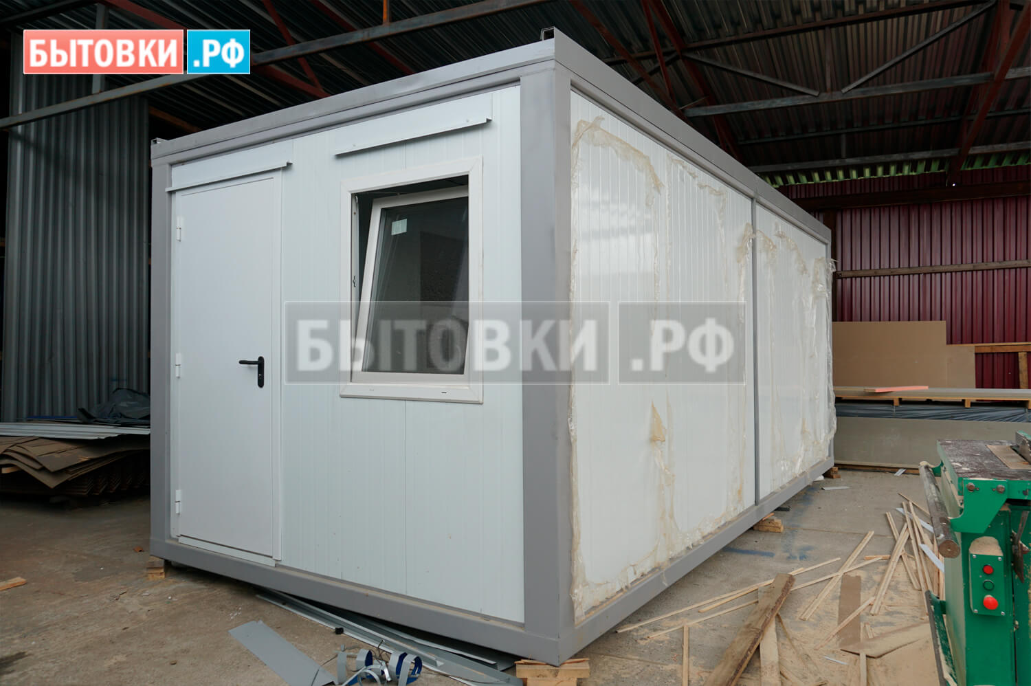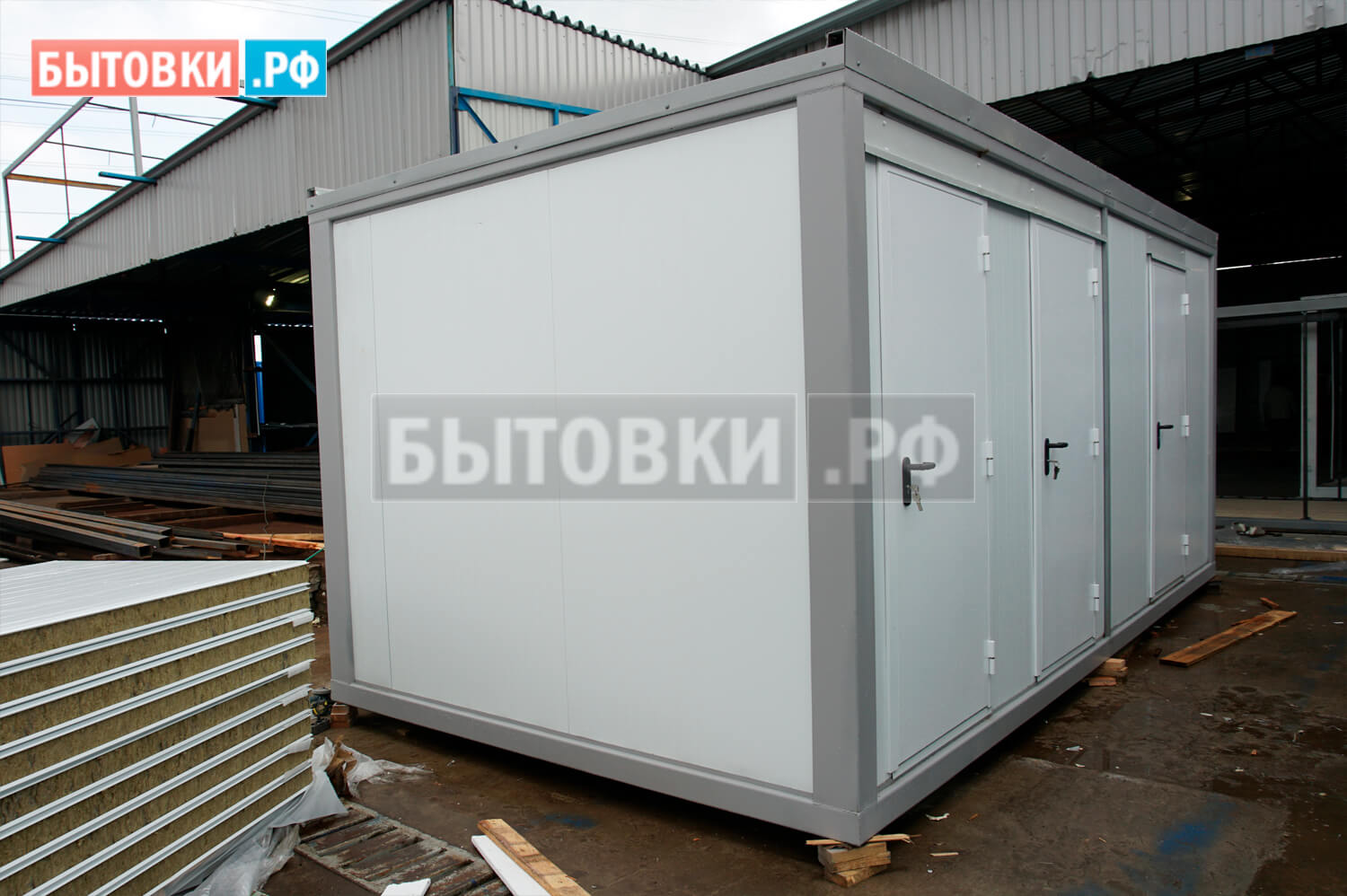 Заводская трехслойная сэндвич-панель металл/базальт/металл 100 мм; Гнутые короба, углы и отливы из окрашенного листа 0,5 мм; Металлический лист сэндвич-панели (цвет белый RAL 9003)Каркас::