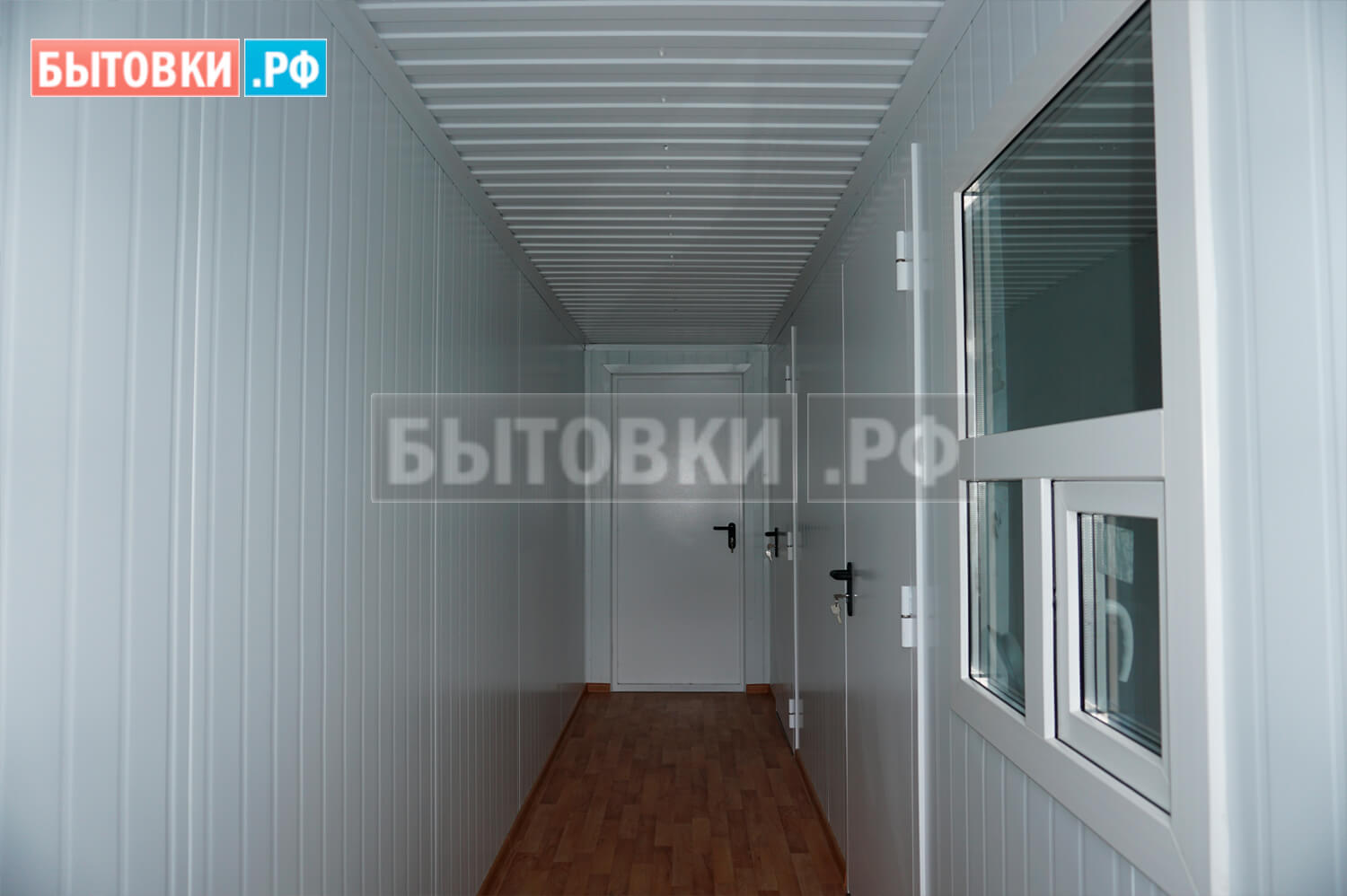 Нержавеющая кровля, покрытая двумя оцинкованными стальными листами толщиной 0,55 мм с двойным фальцевым соединением вдоль контейнера и гидроизоляцией. Скат кровли 30 мм.Потолок::