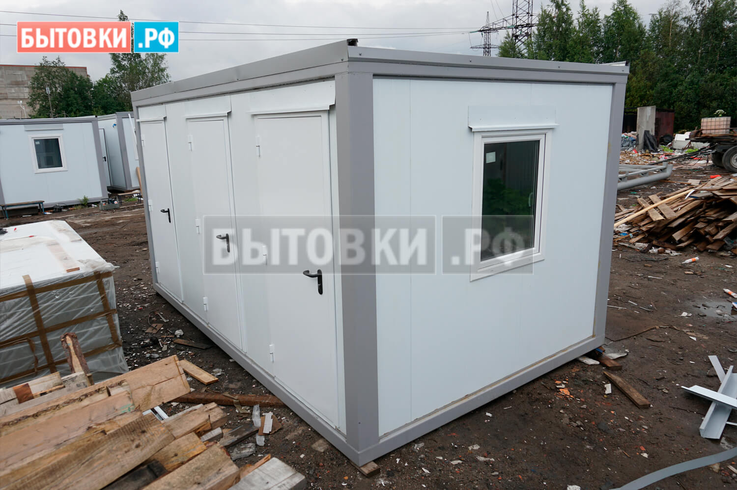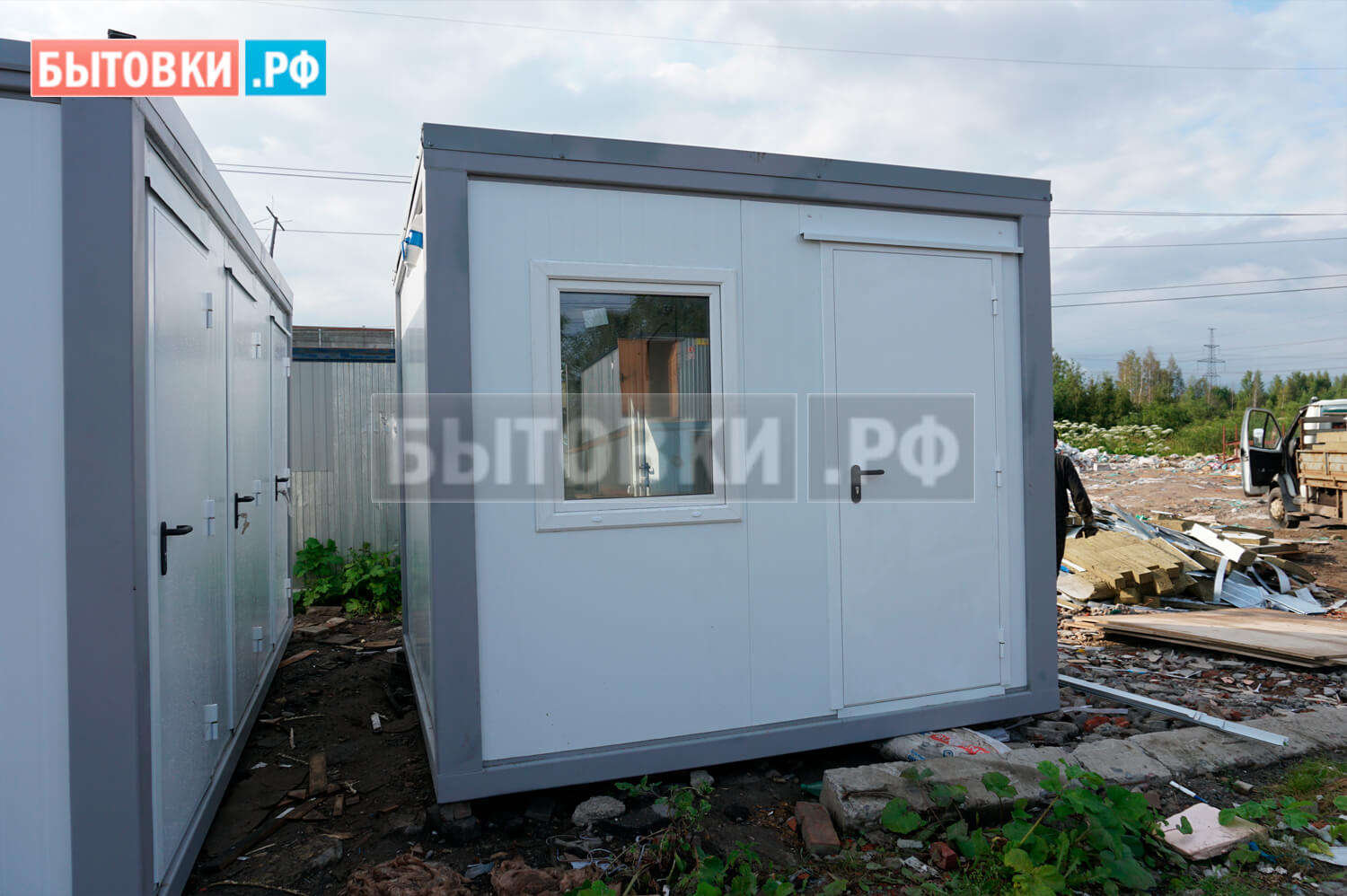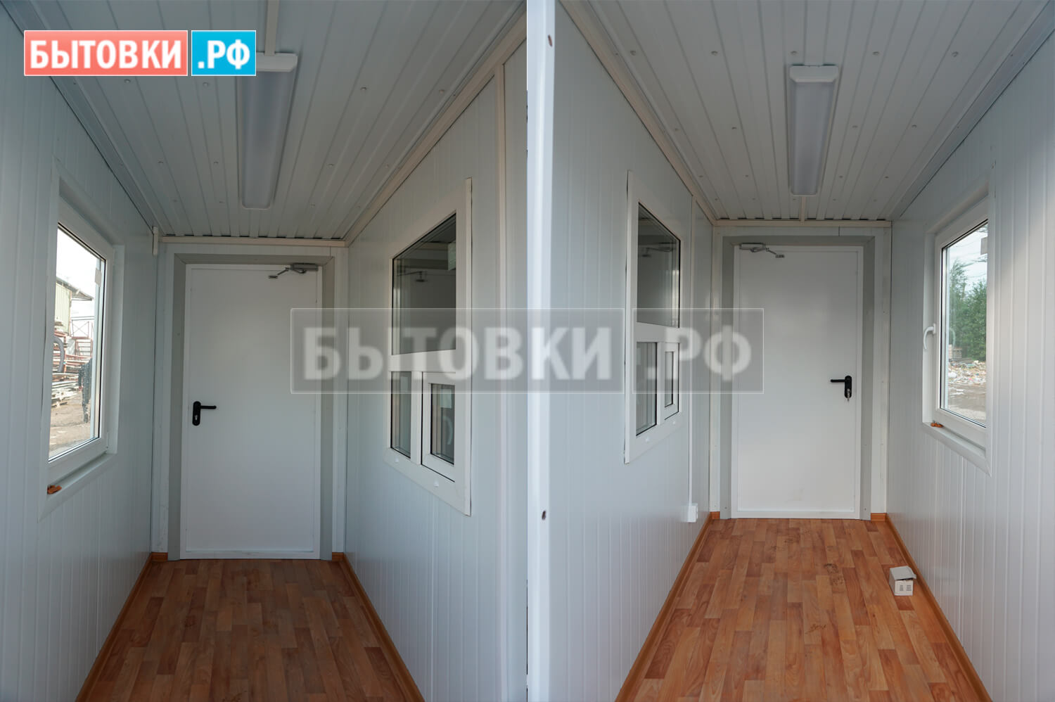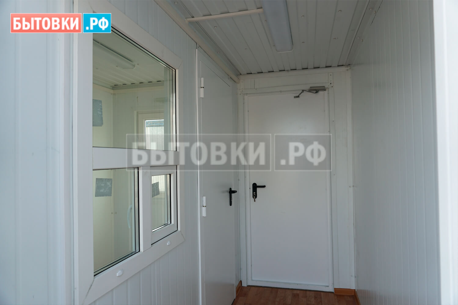 Стальной холодно-катанный лист (0,8 мм), уселения пола - швеллер 100х50х3 мм с шагом 600 мм, лаги пола - брус 100х40 мм. камерной сушки, обработан огнебиозащитой, ЦСП (22 мм.); Линолеум износостойкий (коммерческий) Tarkett, ПВХ плинтус.Наружние двери: :