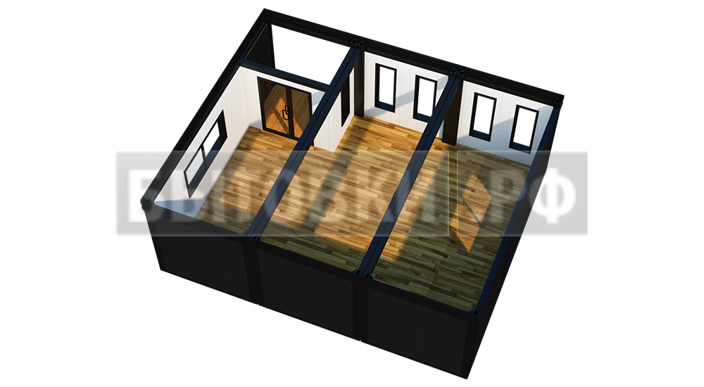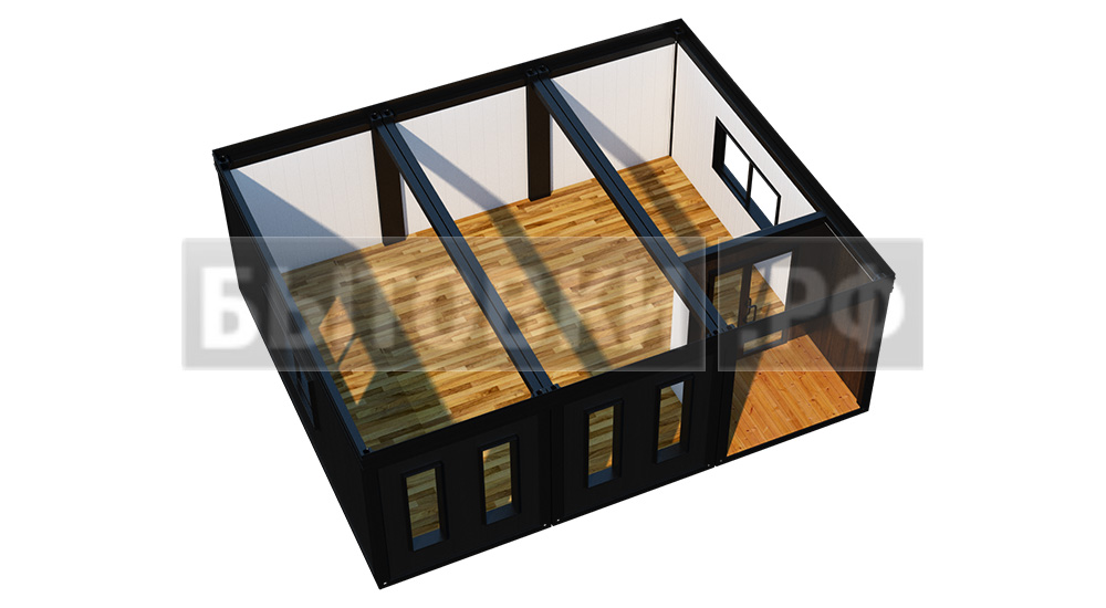 Высота конька 1500ммВ отличие от объектов капитального строительства модульные здания для бизнеса обладают минимальными вложениями и рекордно короткими сроками сдачи в эксплуатацию. Предложенный производителем Бытовки РФ ассортимент подойдет для расширения зон влияния и для успешного бизнес-старта.