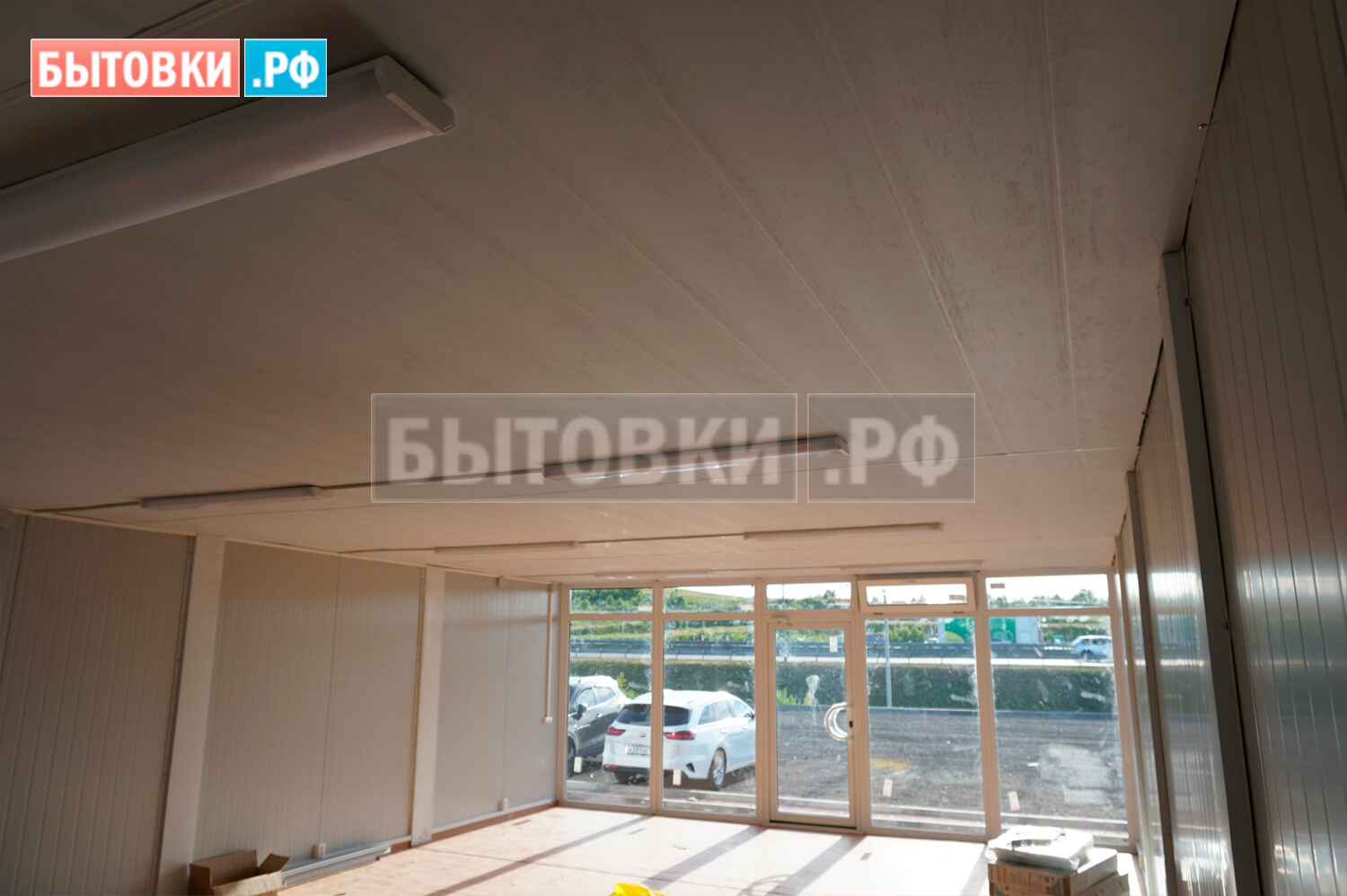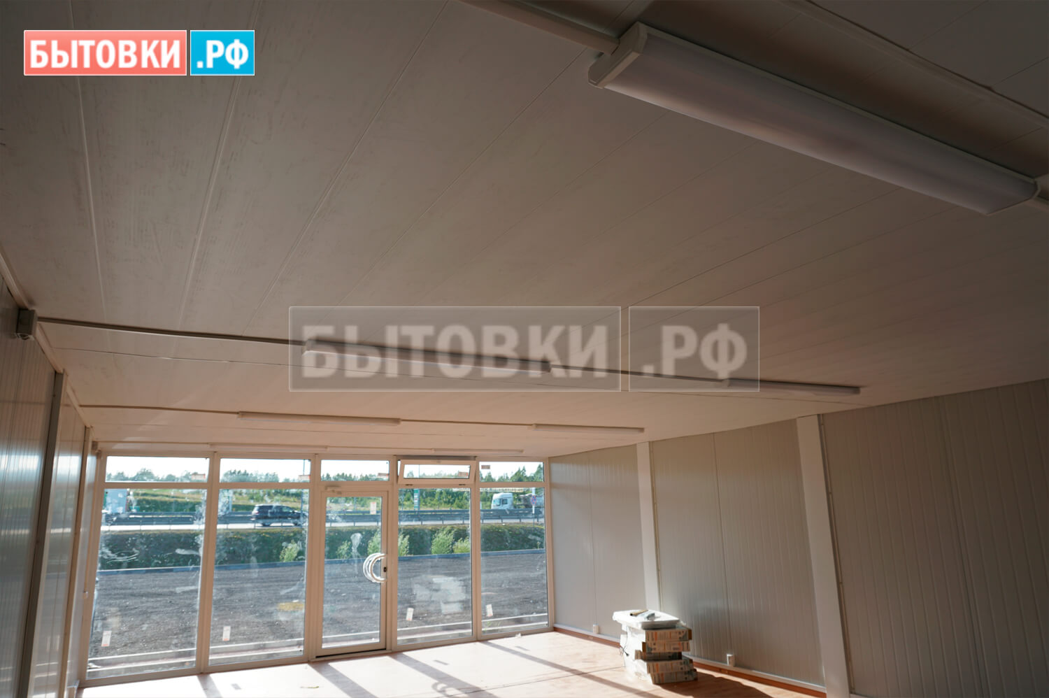 Трѐхслойная сэндвич-панель с утеплителем из базальтовой ваты толщиной 100 мм, цвет (RAL 7035). Сопротивление теплопередаче стен R= 2,72 м 2 оС/Вт. ПВХ (потолок)Черновой пол: :