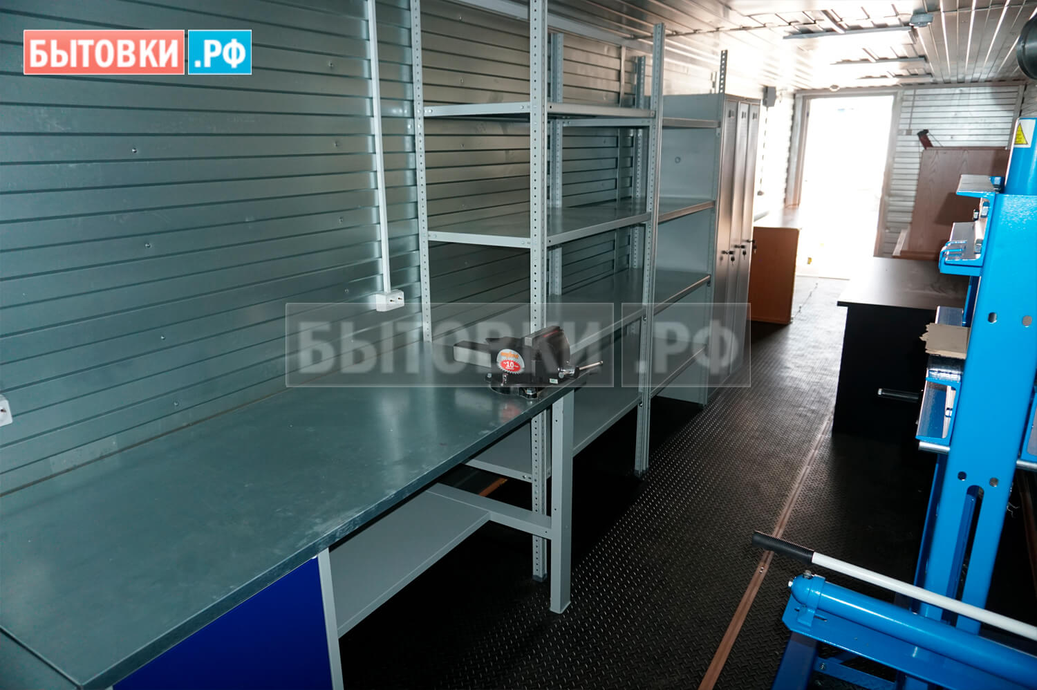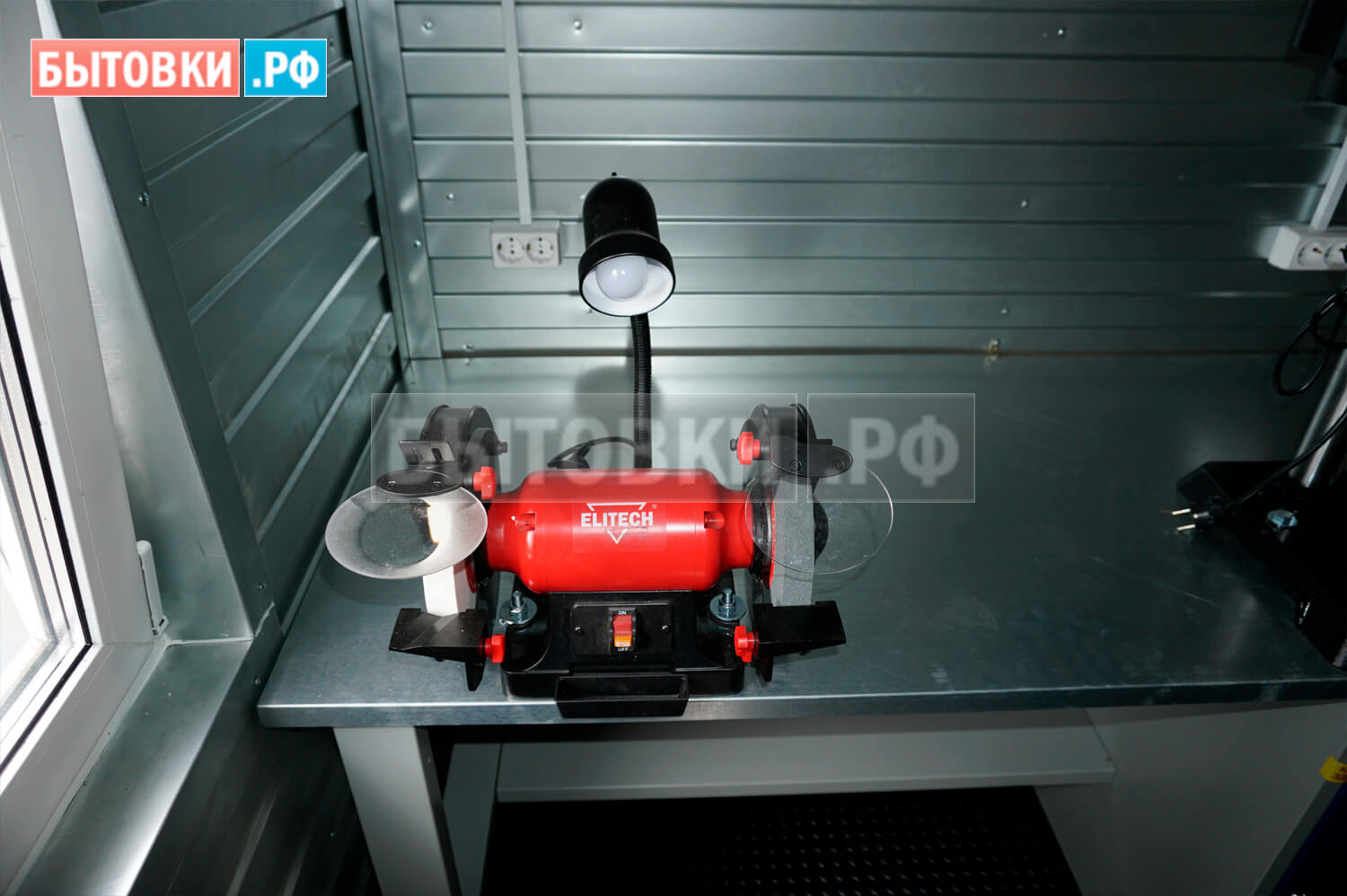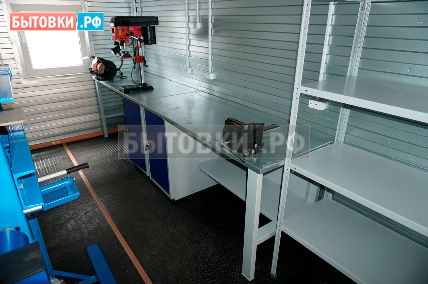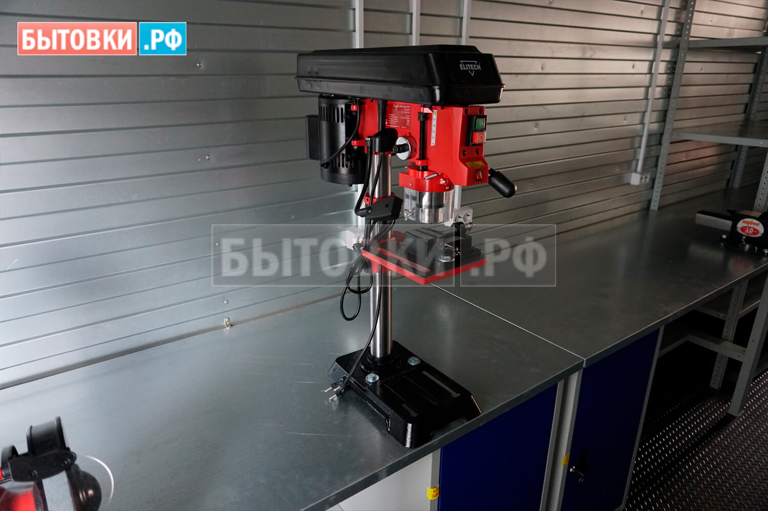 Стол верстак с ящиком Profi (№600) WT160.WD1/F1.000 ( либо Аналог ) – 2 шт. Стеллаж металлический с полками – 2 шт. Тисы слесарные Горилла 200х150 мм 20,0кг 360°, Stalex — 1 шт. Станок сверлильный 5525ПЛ, Elitech — 1 шт (либо аналог). Шкаф для одежды мета