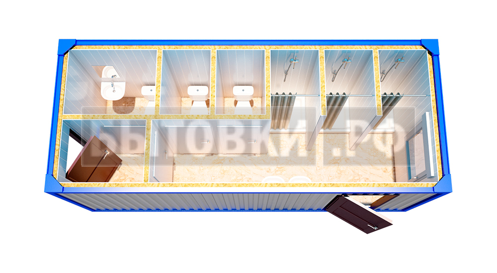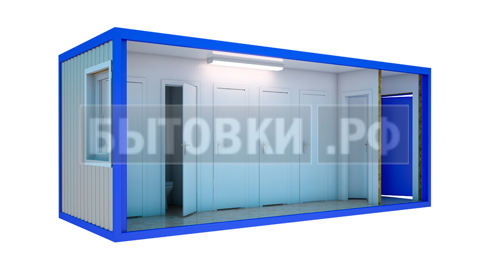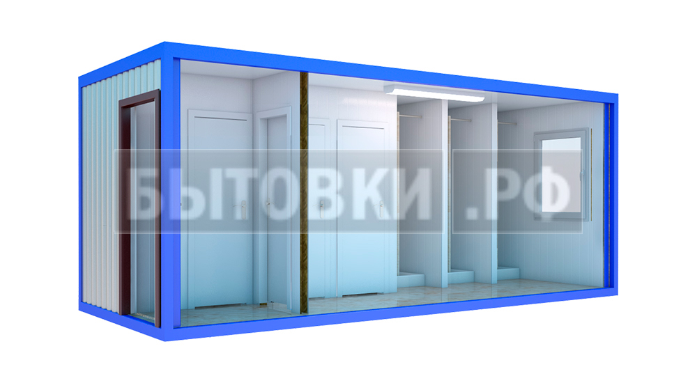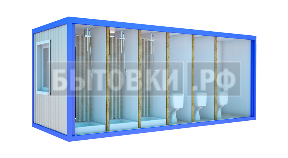 По умолчанию это вспомогательный технический модуль бытового назначения. В каталоге ООО Бытовки РФ имеются решения для отдельно стоящих душевых, туалетов и блоков, встраиваемых в другие жилые, промышленные, административные, спортивные комплексы, здания культурного, бытового назначения – штаб строительства, раздевалка, склад, офис, магазин.