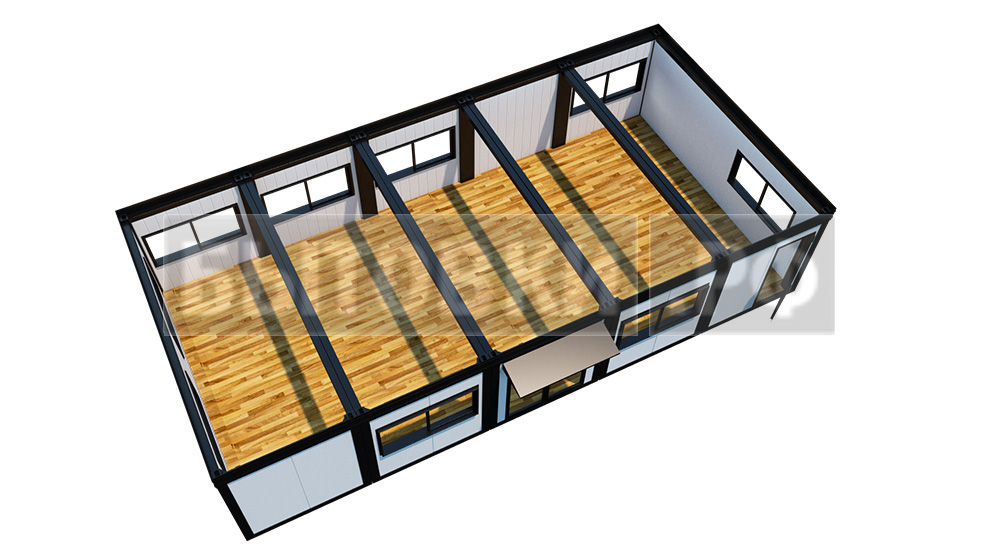 Крупногабаритные сборочные единицы выполнены в виде блок контейнеров с металлическим черновым полом. Бюджет возведения модульного комплекса по умолчанию ниже в сравнении с остальными строительными технологиями.