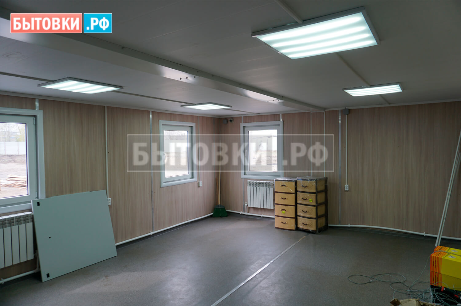 Жилые блоки – ДСП 16 мм, линолеум бытовой, в с/у – линолеум бытовой, ЦСП 20 мм, поверх обрезной доски 25х100 мм.Кровля: